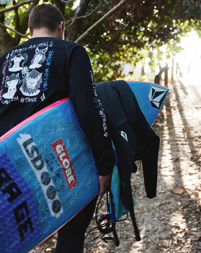 Camiseta Volcom Manga Longa Regular Surf Vitals Animals Preta