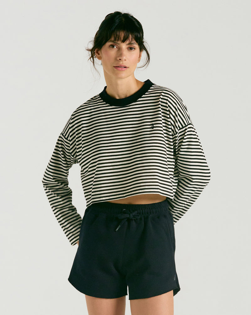 Camiseta Volcom Manga Longa Stripes Preta