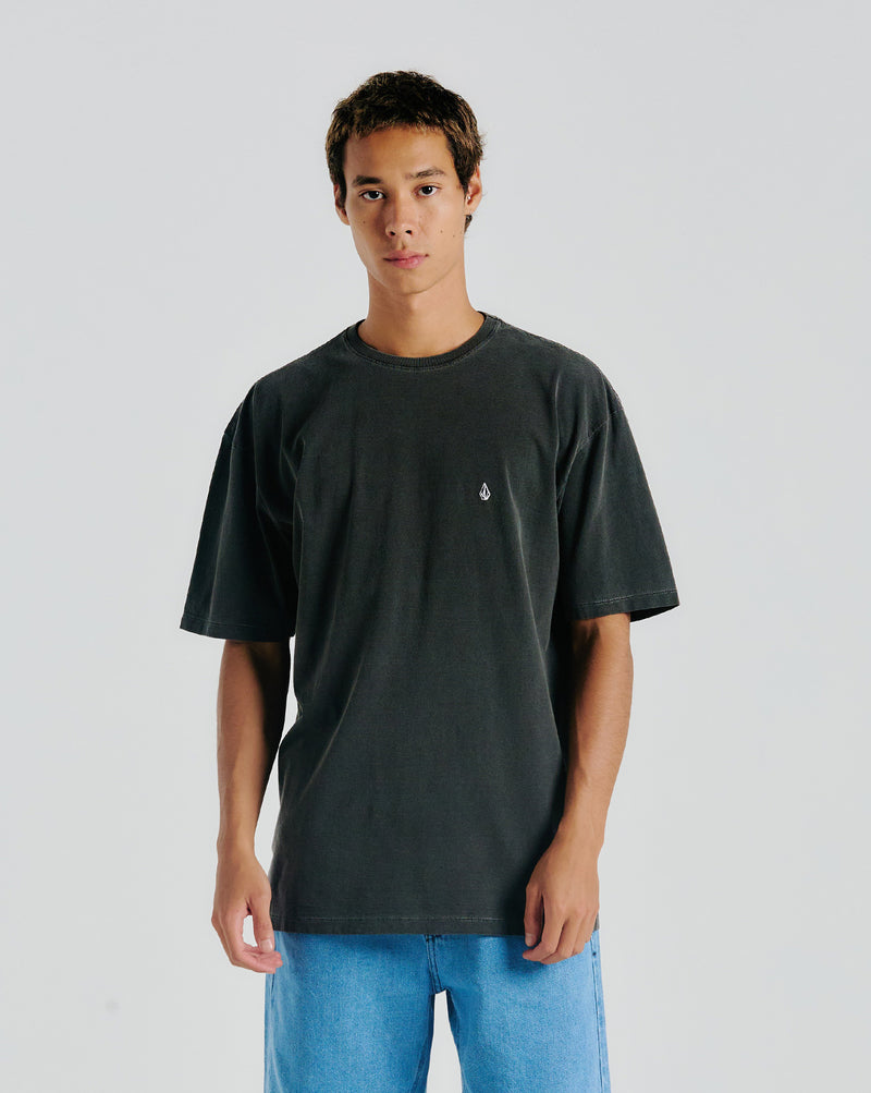 Camiseta Volcom Mini Mark. Possui modelagem regular, bordado Volcom Stone frontal, etiqueta Volcom na barra e lavanderia efeito ionizado.