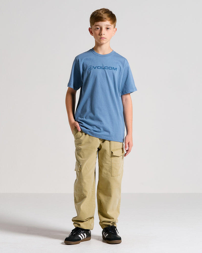 Camiseta Volcom New Style Juvenil. Possui modelagem regular, estampa em silk frontal, assinatura Volcom na manga, etiqueta interna e viés contrastante.