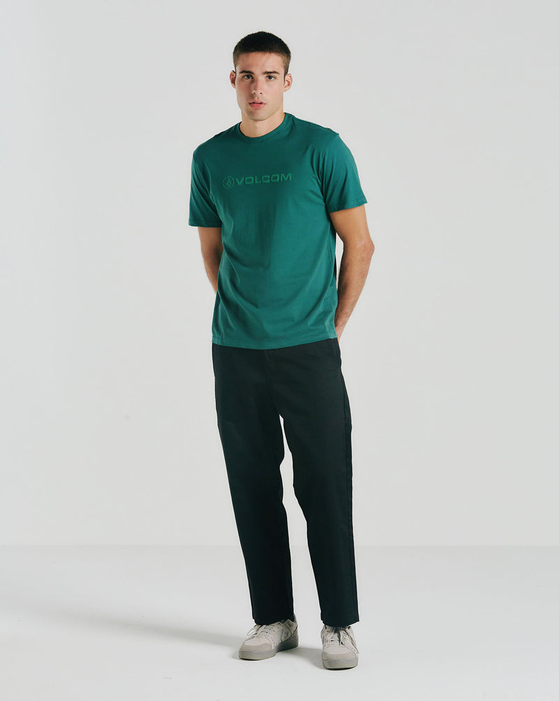 Camiseta Volcom New Style. Possui modelagem regular, estampa em silk frontal em alto relevo, assinatura Volcom na manga e viés contrastante.