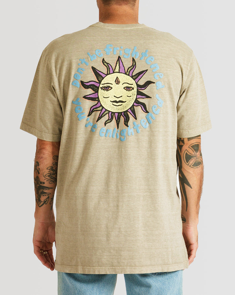 Camiseta Volcom Ozzy Wrong. Apresentando a arte do surfista, artista e músico, Ozzy Wrong, este clássico não terá seus chakras alinhados. Dont Be Frightened, Youre Enlightened.Possui modelagem regular, silk 3d em relevo frontal e nas costas e lavagem efeito estonado. Confeccionada em meia malha de algodão 30/1. Disponível nas cores azul e off white.