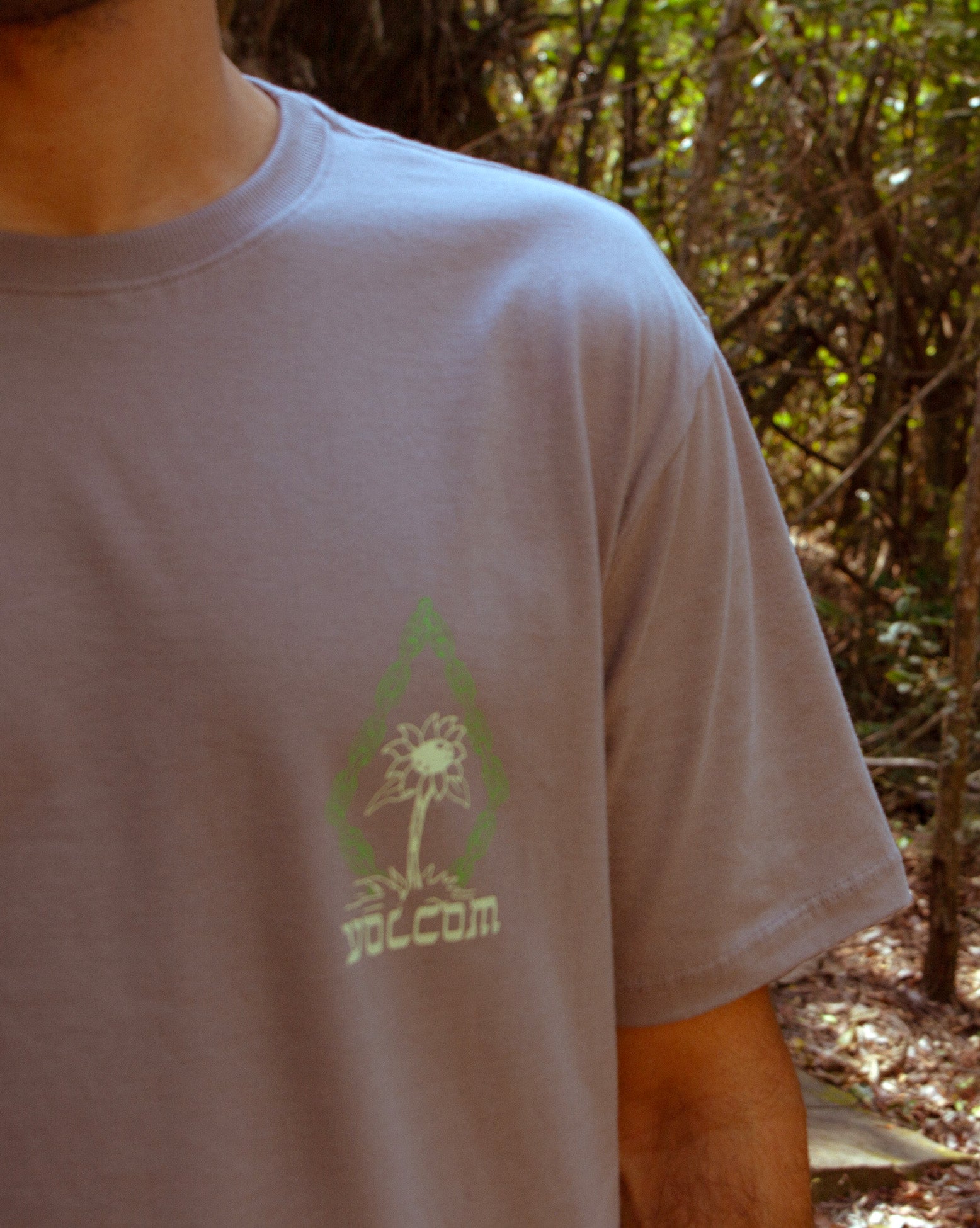 Camiseta Volcom Perseverance. Confeccionada em algodão 100% orgânico que tem como principal diferencial sua produção e cultivo que em comparação com o algodão convencional tem muito mais benefícios ao meio ambiente.