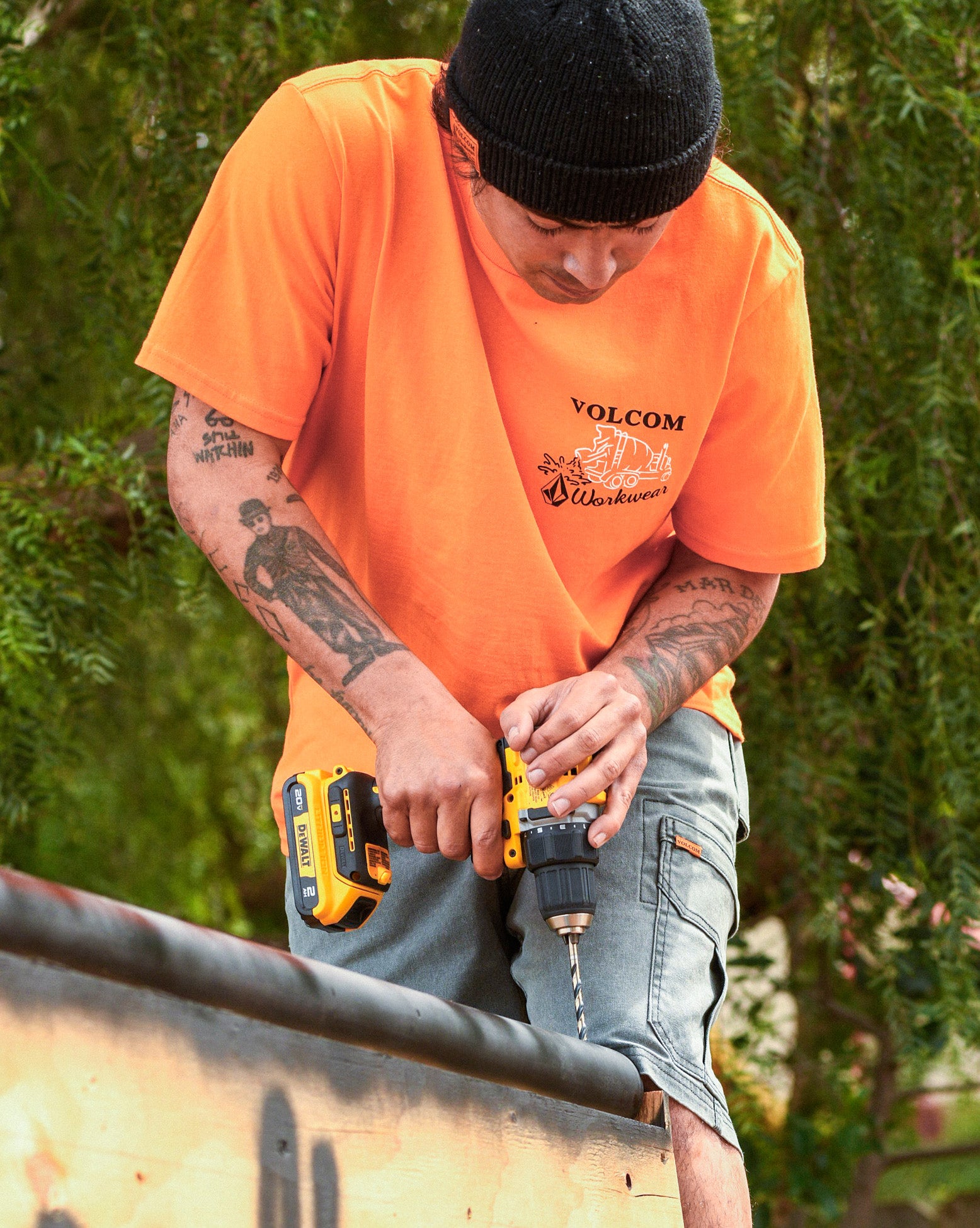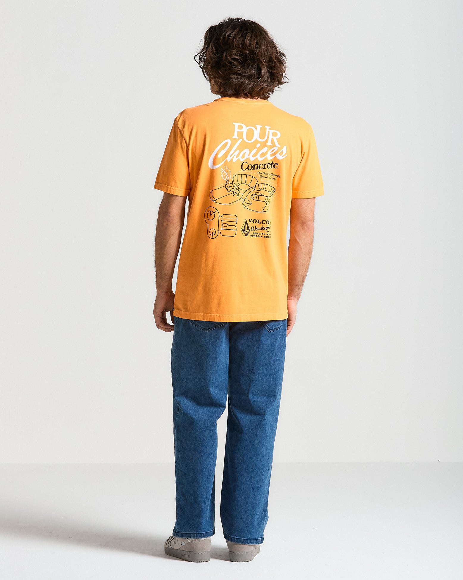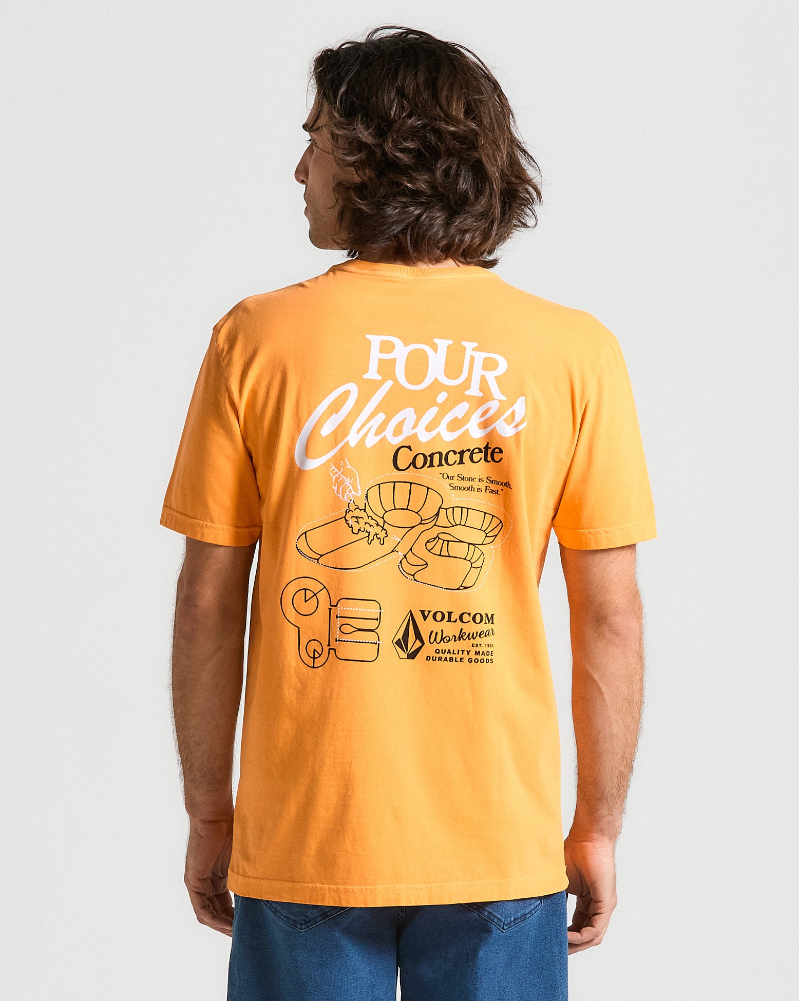 Volcom Workwear: quality made, durable goods. Camiseta Volcom Pour Choices. Possui modelagem regular, estampa em silk frontal e nas costas, lavanderia efeito estonado e viés interno do próprio tecido.