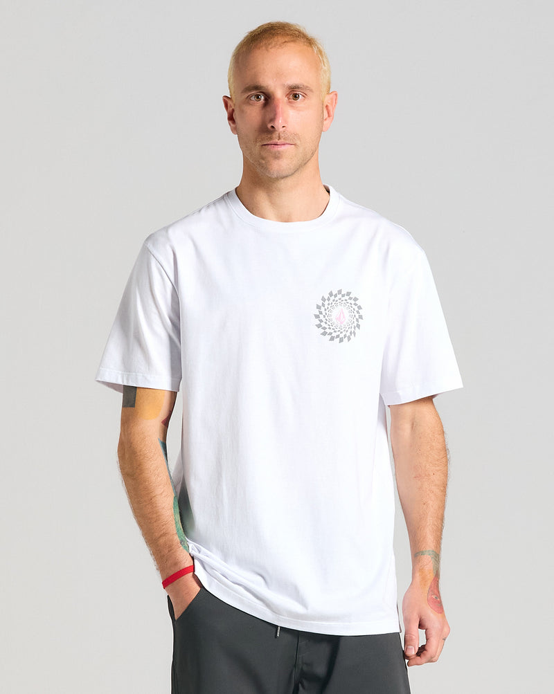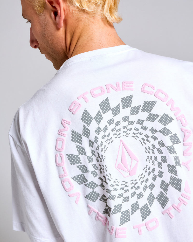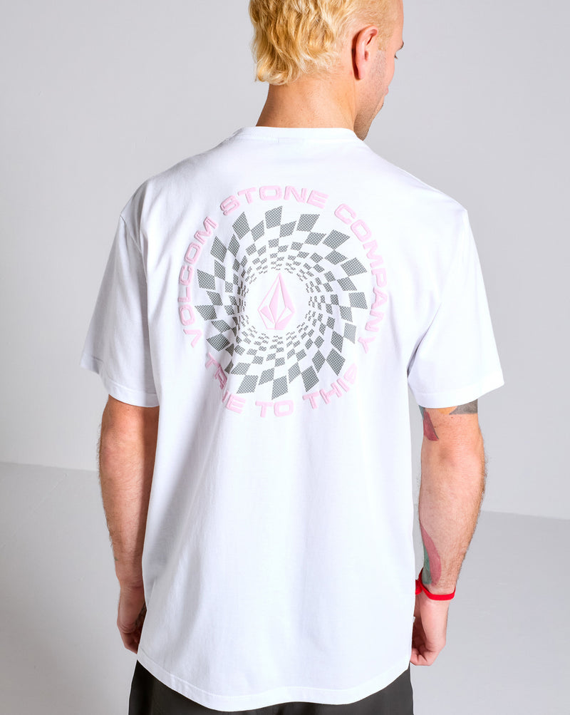 Camiseta Volcom Rabbit Hole. Possui modelagem regular, estampa em silk frontal e nas costas em alto relevo, assinatura Volcom na manga, etiqueta interna e viés contrastante.