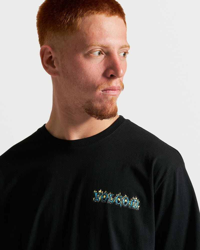 Camiseta Volcom Regular Brimstone. Possui modelagem regular, estampa em silk frontal e nas costas, assinatura Volcom na manga e viés contrastante. Disponível nas cores branco, preto e militar.