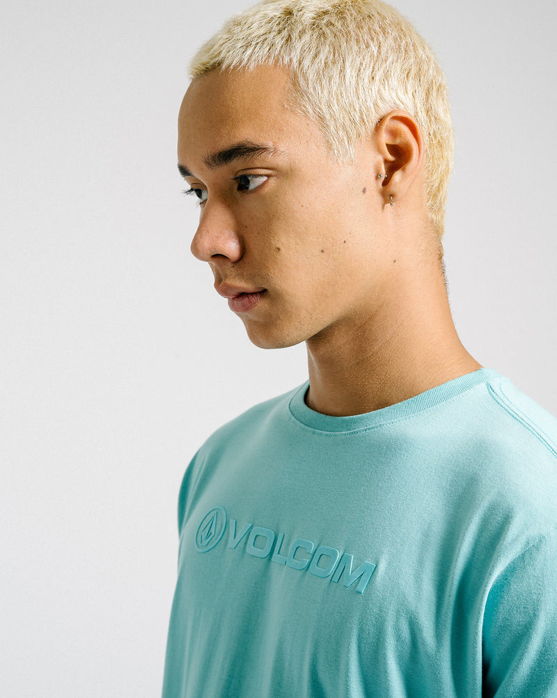 Camiseta Volcom Regular New Style. Possui modelagem regular, estampa em silk frontal em alto relevo, assinatura Volcom na manga e viés contrastante.