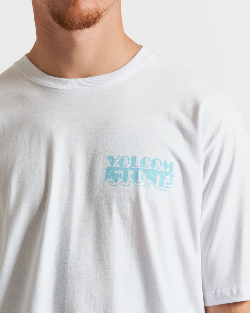 Camiseta Volcom Regular Stript. Possui modelagem regular, estampa em silk frontal e nas costas, assinatura Volcom na manga e viés contrastante. Disponível nas cores branco e preto.