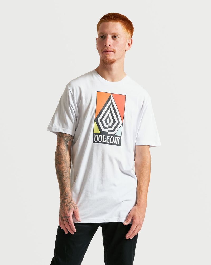 Camiseta Volcom Regular Zorn. Possui modelagem regular, estampa em silk frontal, assinatura Volcom na manga e viés contrastante. Disponível nas cores cinza, verde e branco.
