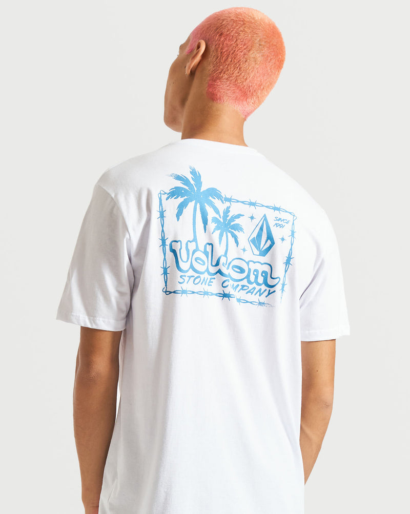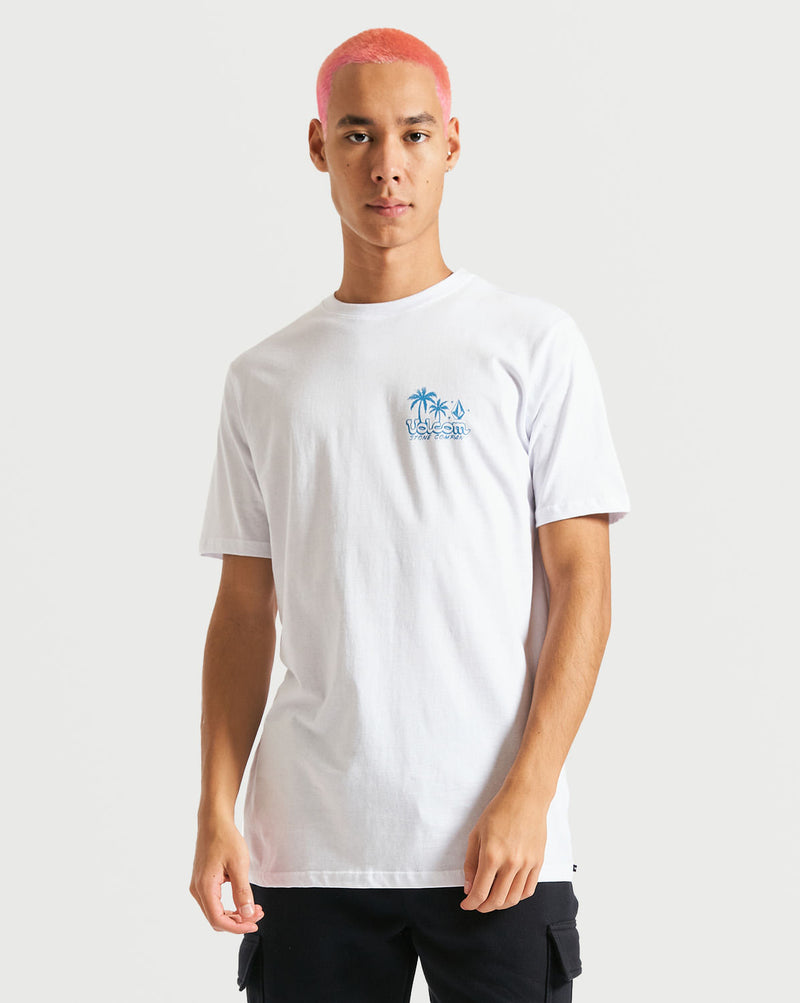 Camiseta Volcom Slim Cynical. Possui modelagem slim, estampa em silk frontal e nas costas, assinatura Volcom na manga e viés contrastante. Disponível nas cores preto e branco.
