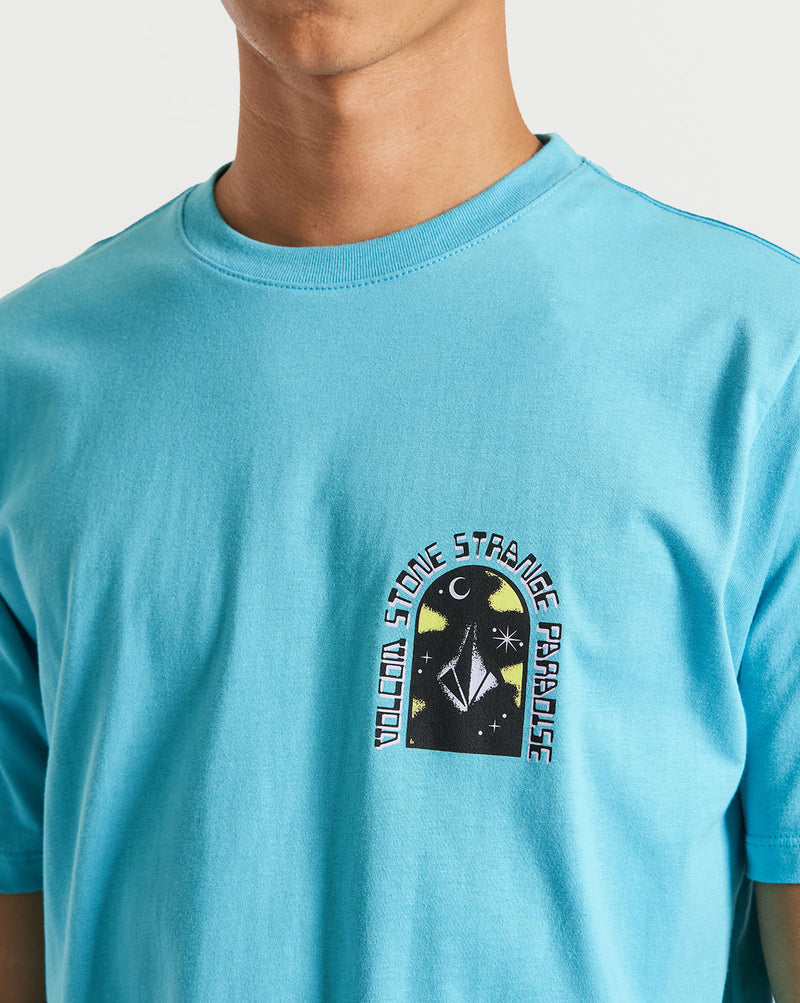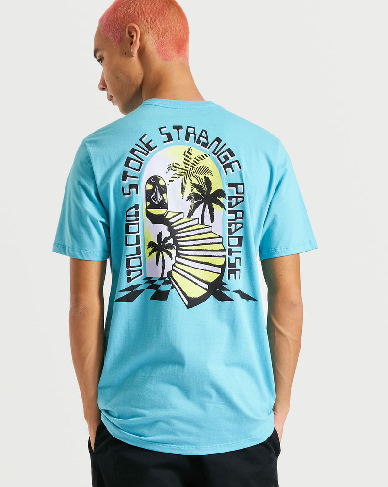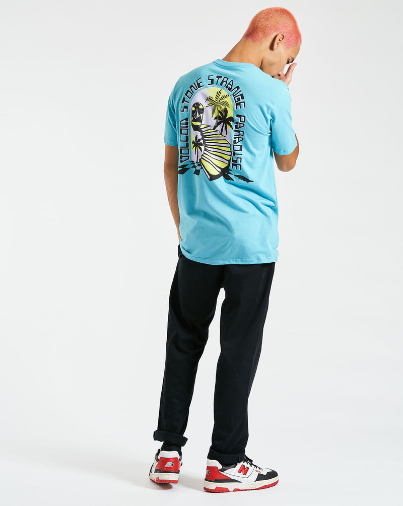 Camiseta Volcom Slim Isle Stone. Possui modelagem slim, estampa em silk frontal e nas costas, assinatura Volcom na manga e viés contrastante. Disponível nas cores branco e azul.