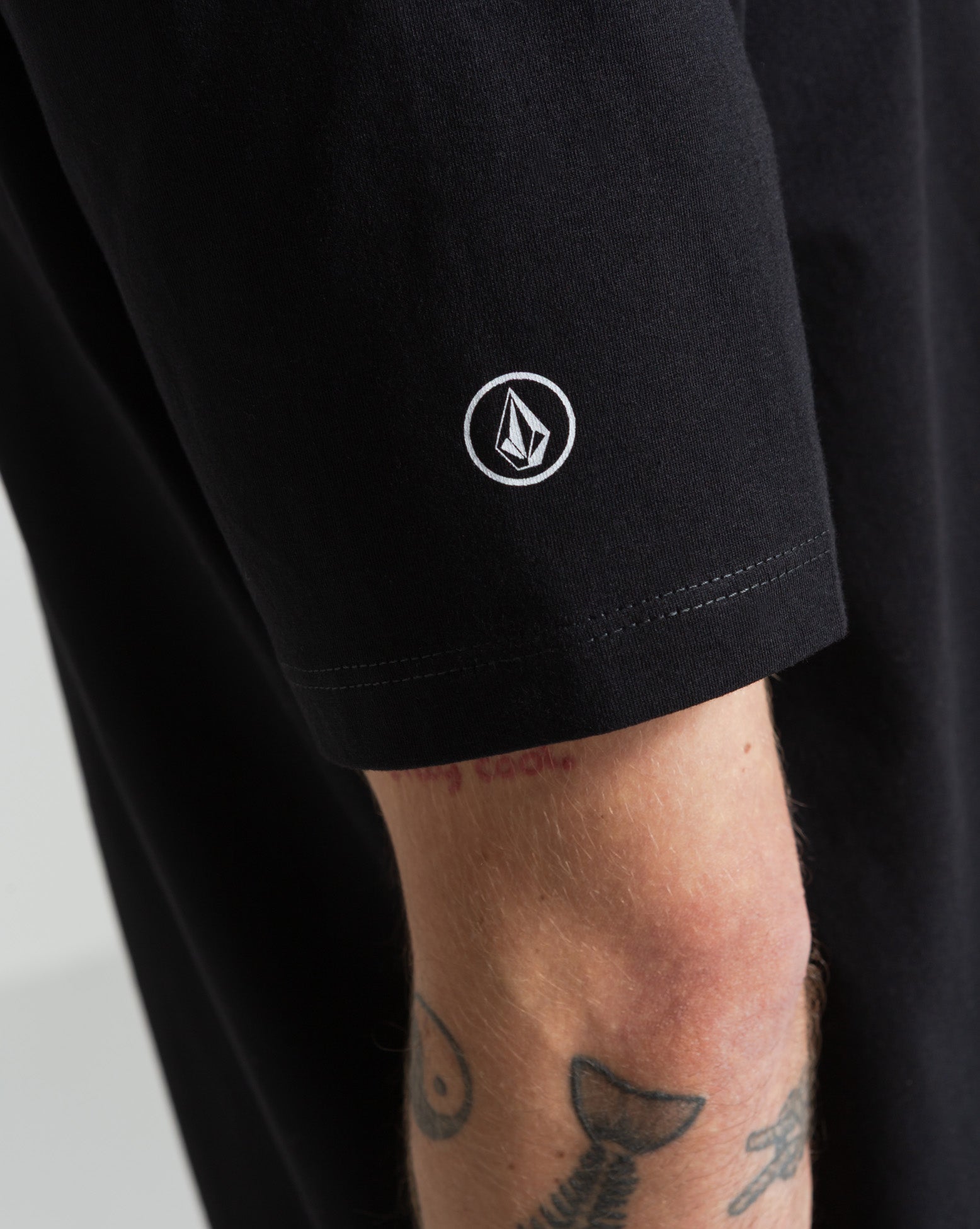 Camiseta Volcom Solid Stone Preta. Possui modelagem regular, silk na manga, assinatura Volcom na manga, etiqueta interna e viés contrastante.
