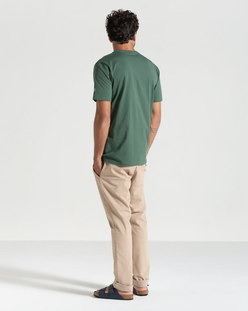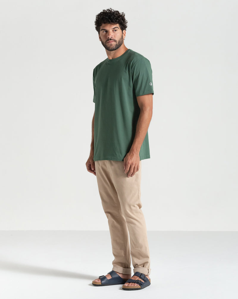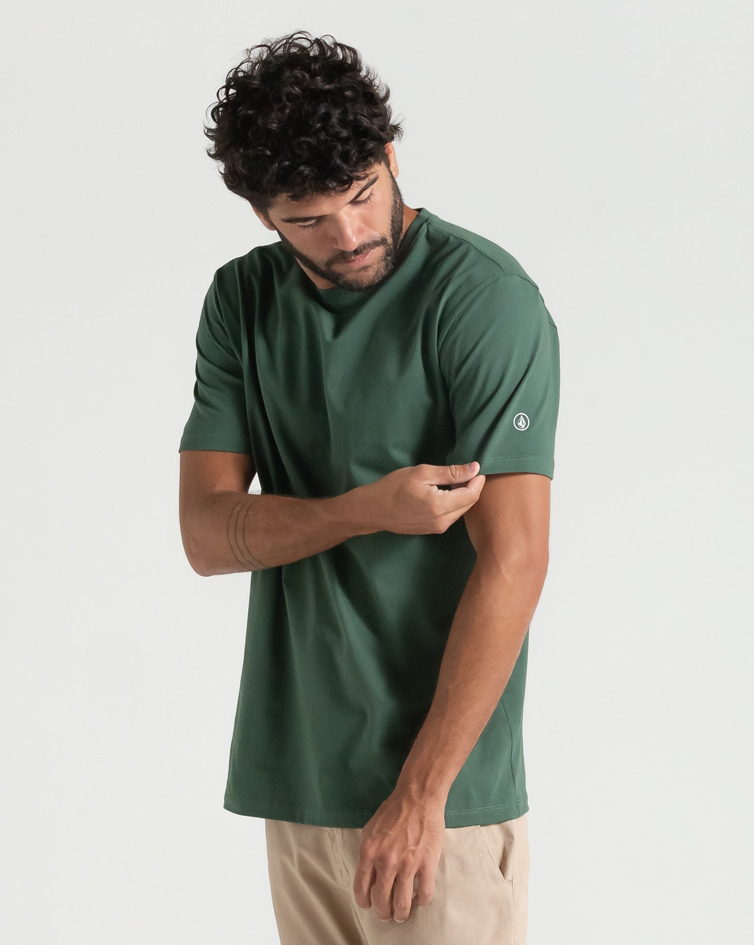 Camiseta Volcom Solid Stone. Possui modelagem regular, estampa em silk Circle Stone na manga, assinatura Volcom na manga, etiqueta interna e viés contrastante.