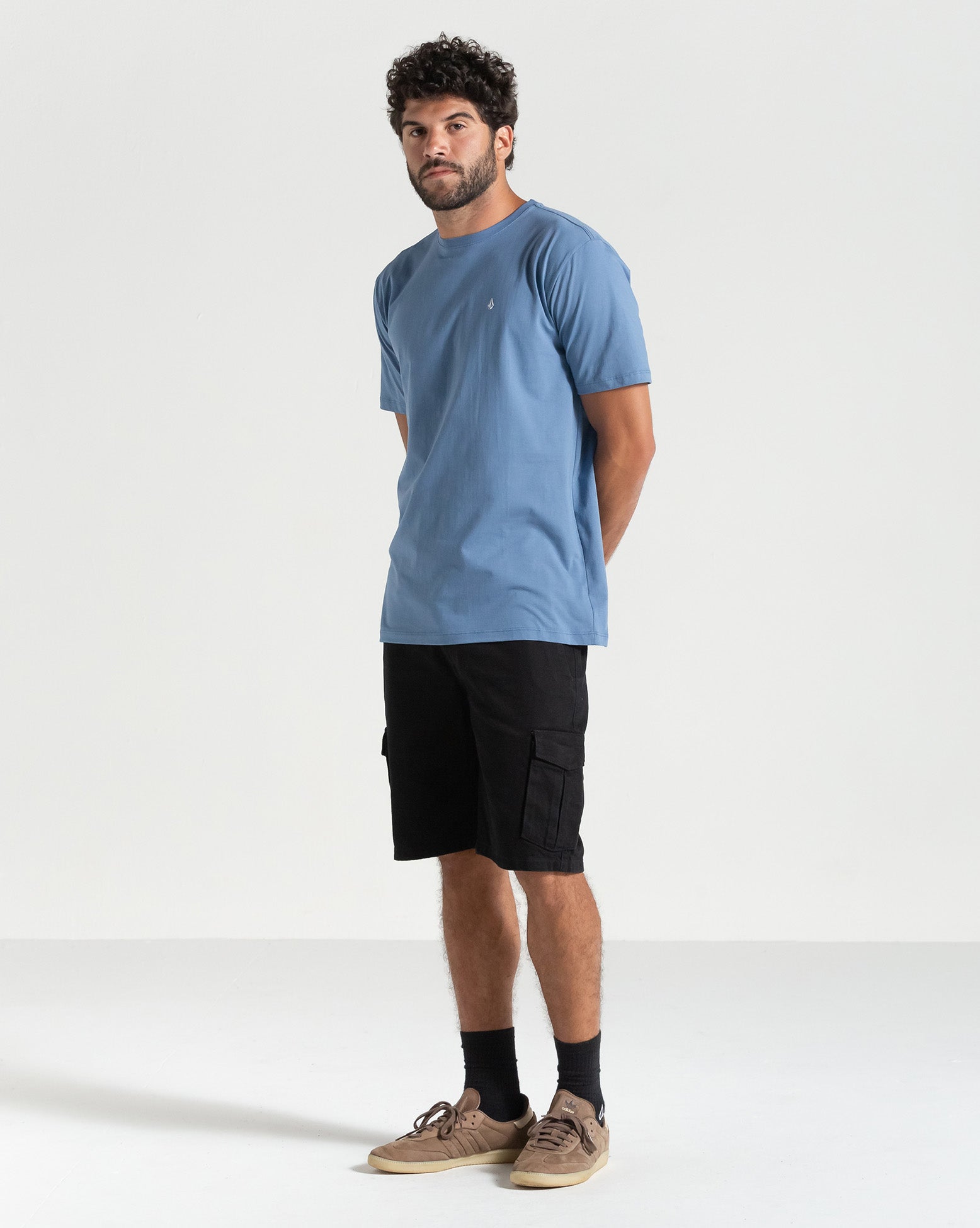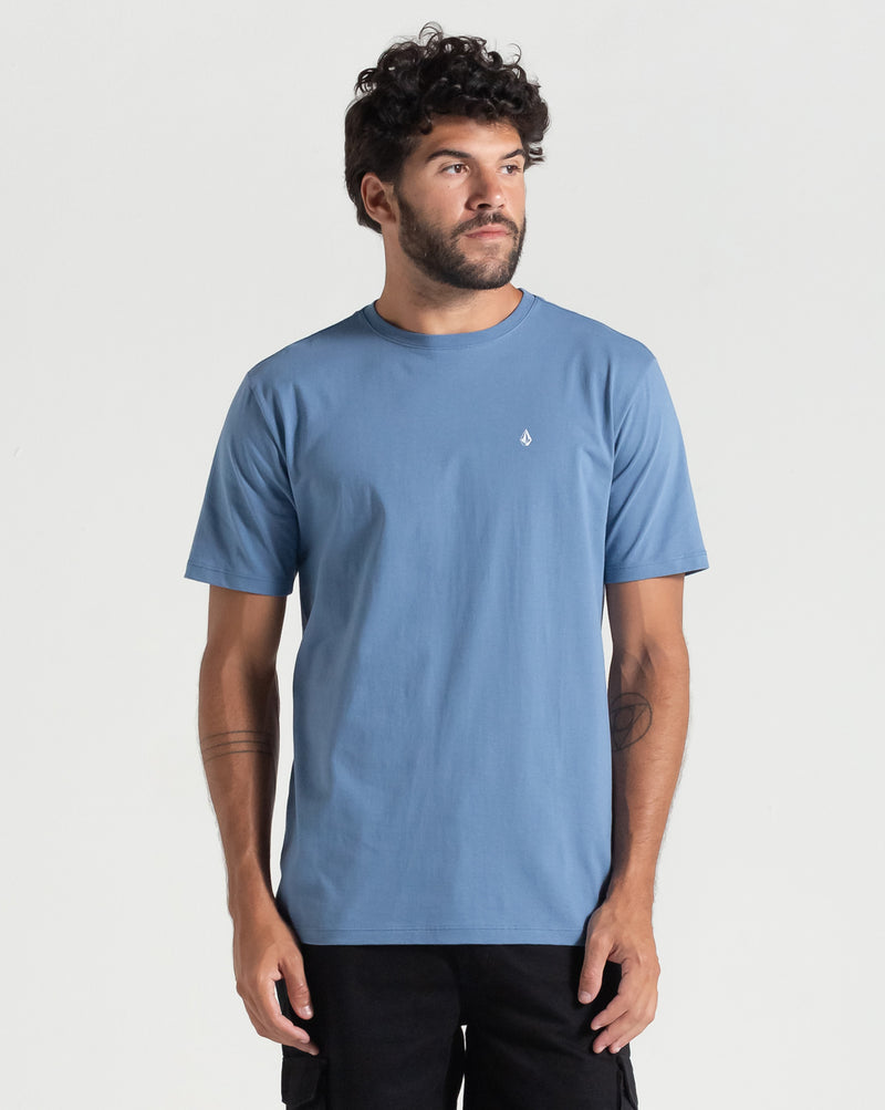 Camiseta Volcom Stone Blanks. Possui modelagem regular, estampa em silk frontal, assinatura Volcom na manga, etiqueta interna e viés contrastante.
