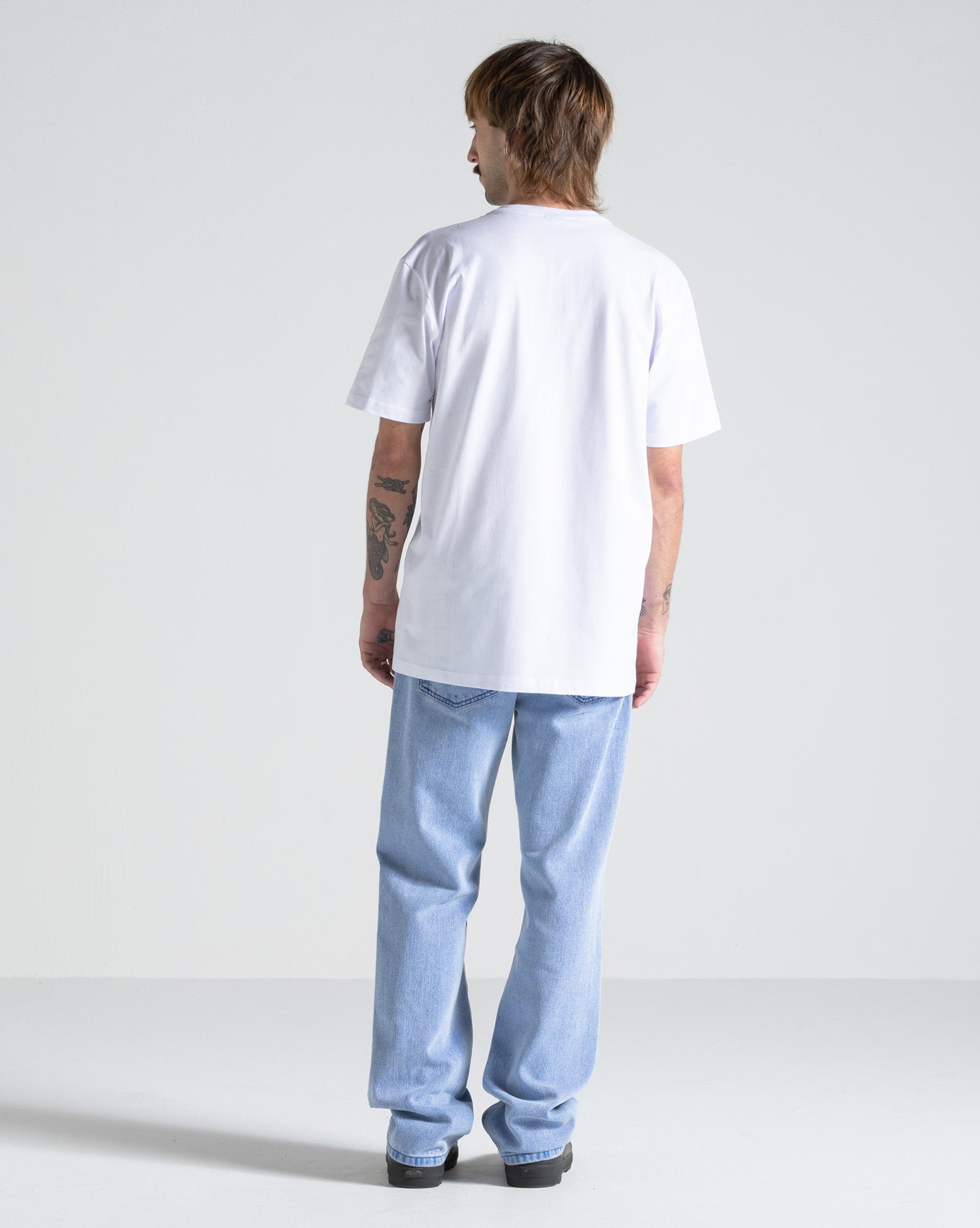 Camiseta Volcom Stone Blanks Branca. Possui modelagem regular, silk frontal, assinatura Volcom na manga, etiqueta interna e viés contrastante.