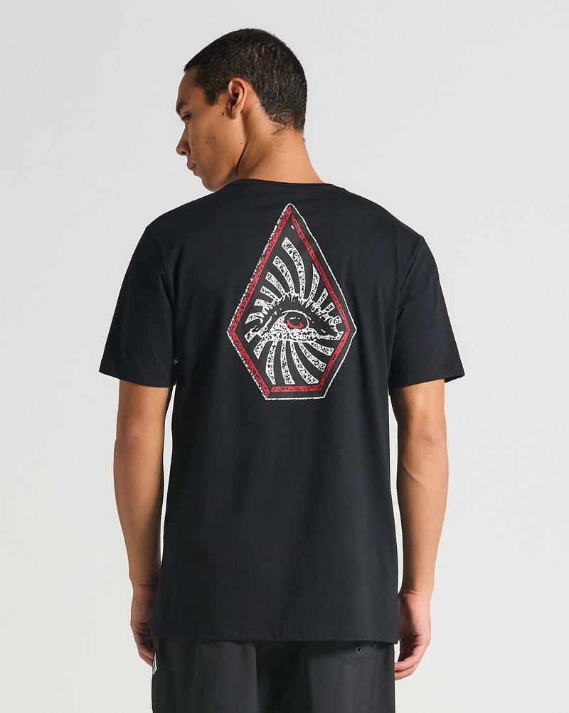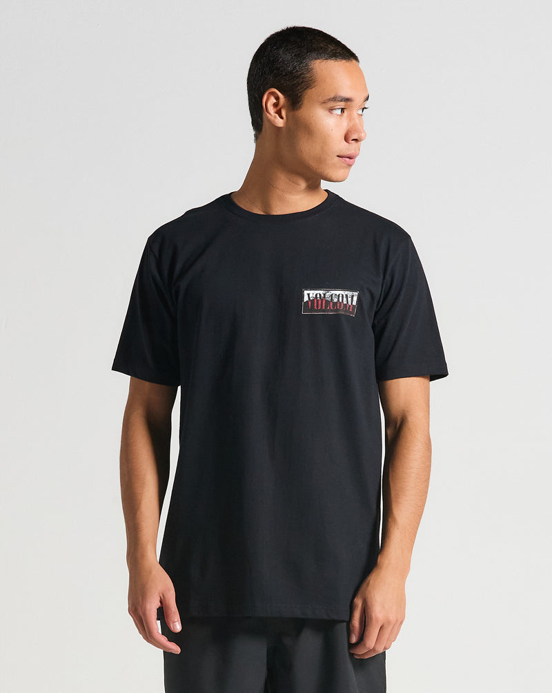 Camiseta Volcom Surf Vitals Jack. Possui modelagem regular, estampa em silk frontal e nas costas, assinatura Volcom na manga e viés contrastante.