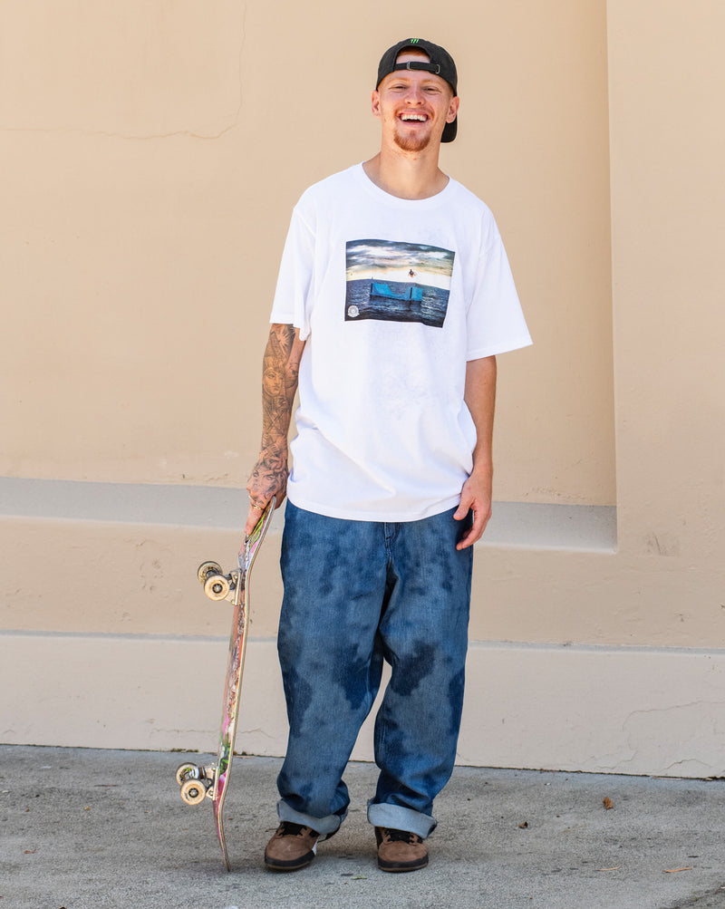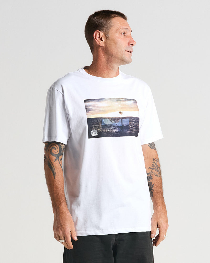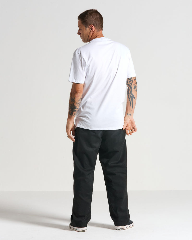 Camiseta Volcom TTT Poster. Camiseta comemorativa do aniversário de 10 anos do icônico filme de Surf, Skate e Snow da Volcom "True To This". Possui modelagem regular, estampa em silk frontal, assinatura Volcom na manga, etiqueta interna e viés contrastante.
