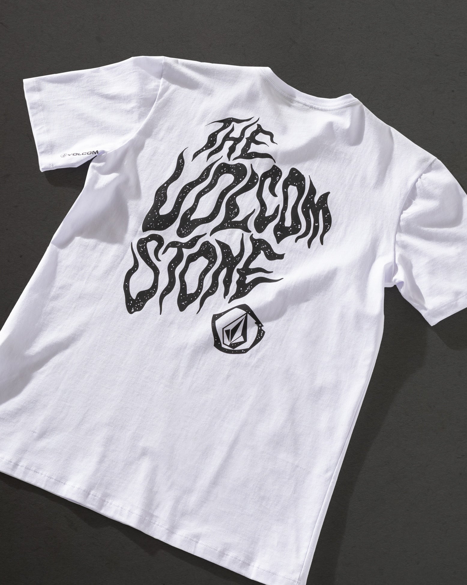 Camiseta Volcom Wavvyy Branca. Possui modelagem regular, silk frente e costas, assinatura Volcom na manga, etiqueta interna e viés contrastante.