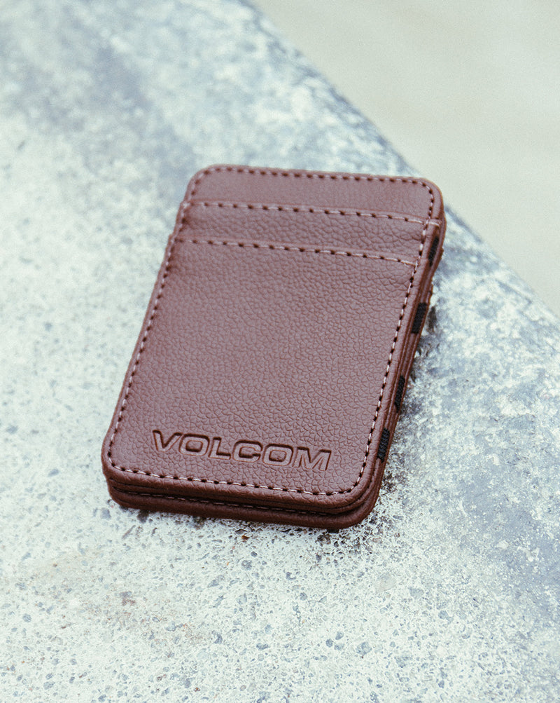 Carteira Volcom Magic Stone. Possui metal Volcom frontal, assinatura Volcom em baixo relevo e divisão interna para cartões, dinheiro e documento.