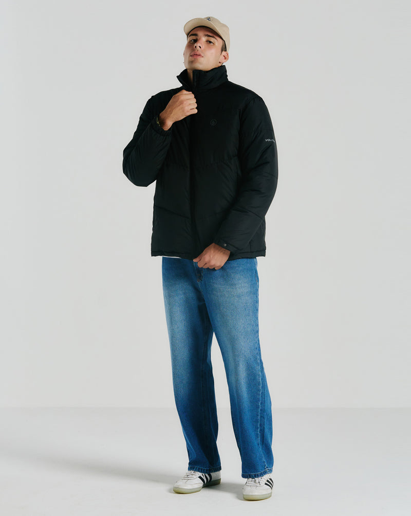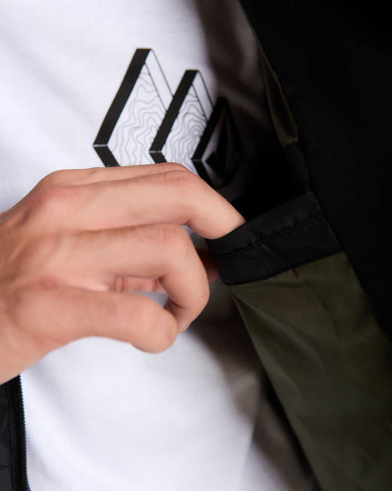 Jaqueta Volcom Goldsmoth. Possui modelagem regular, estampa em silk Circle Stone frontal e na manga refletivo, múltiplos bolsos, fechamento em zíper selado, bolso interno embutido, punho com fechamento em botão e forro interno.