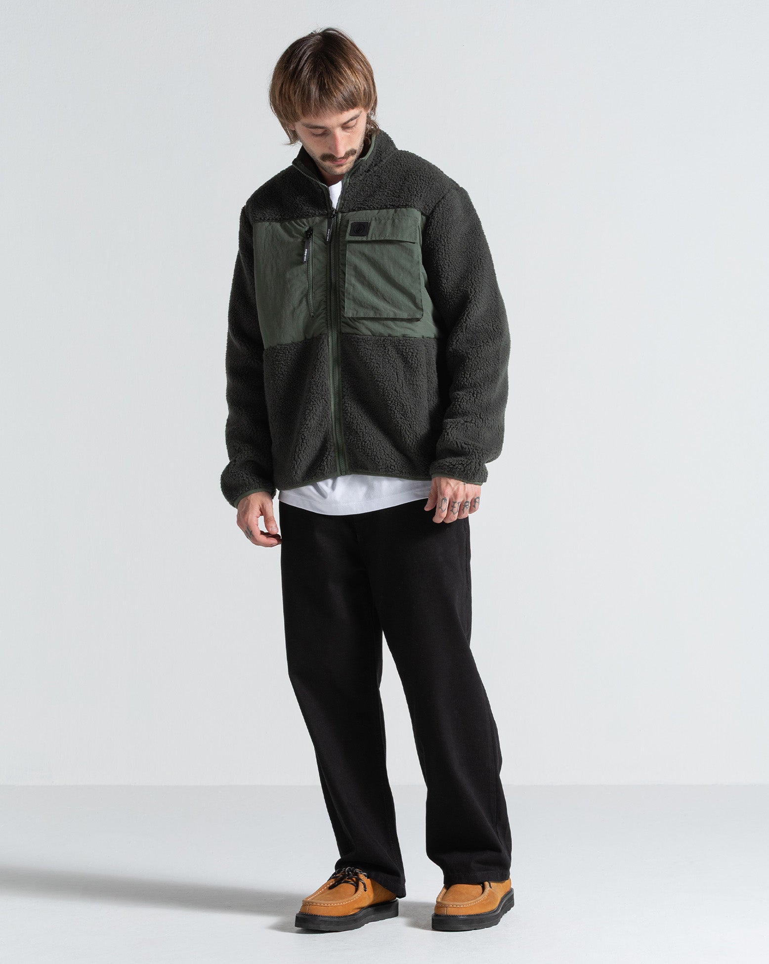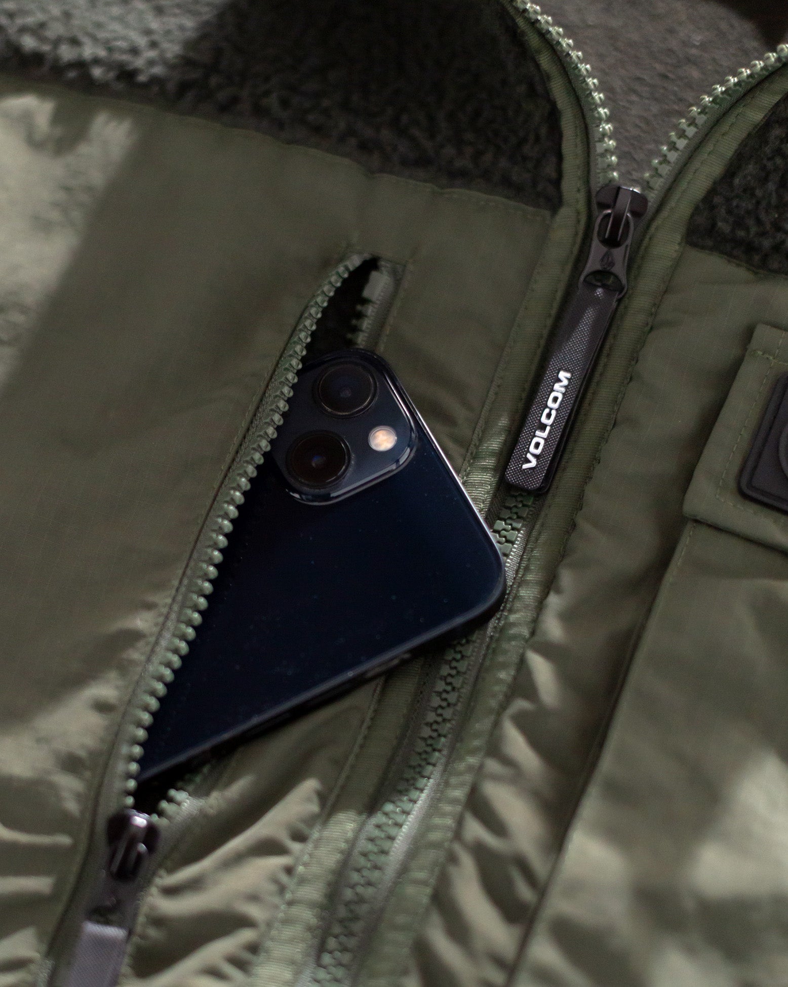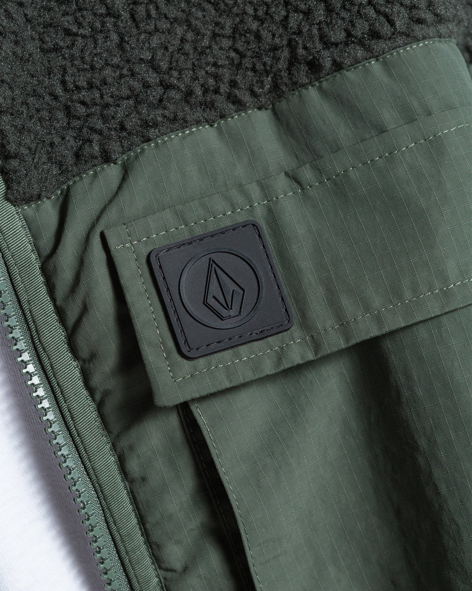Jaqueta Volcom Storm Stone Rinsed Black. Possui modelagem regular, gola alta personalizada, amarrações contrastantes nas mangas, bainha e gola, painel frontal em ripstop com bolso com aba e bolso com zíper, patch Circle Stone frontal, bolso de debrum mais quente para as mãos, múltiplos bolsos e etiquetas Volcom.