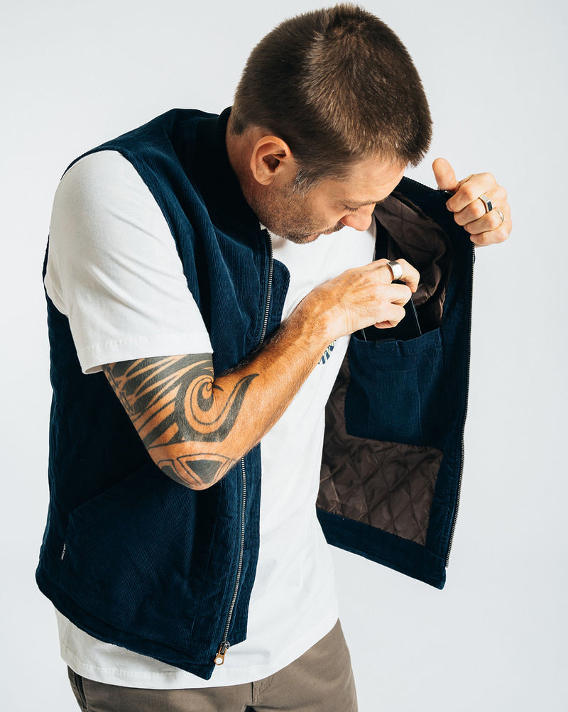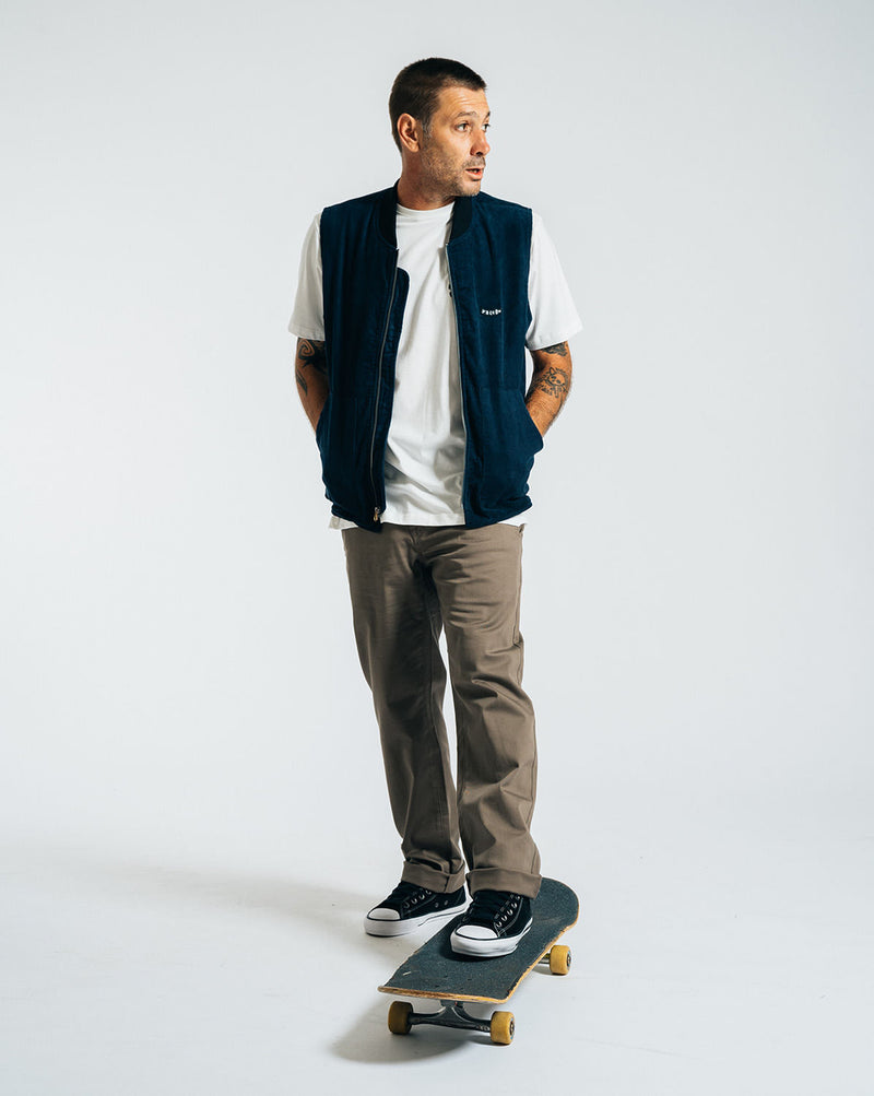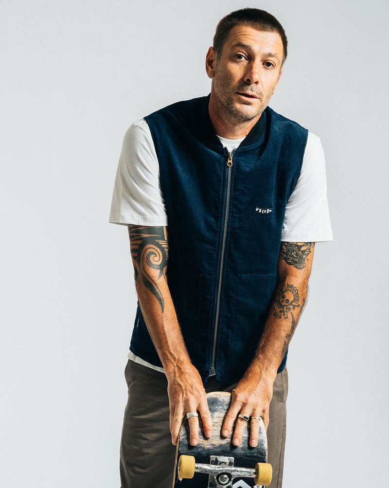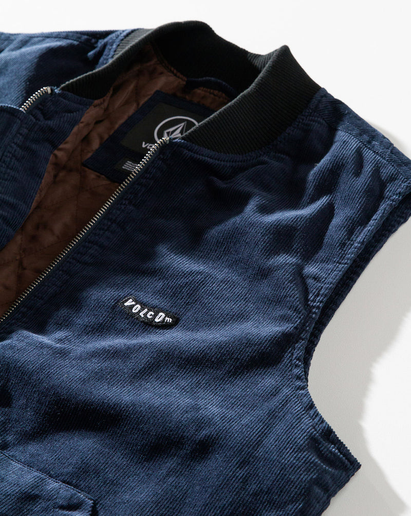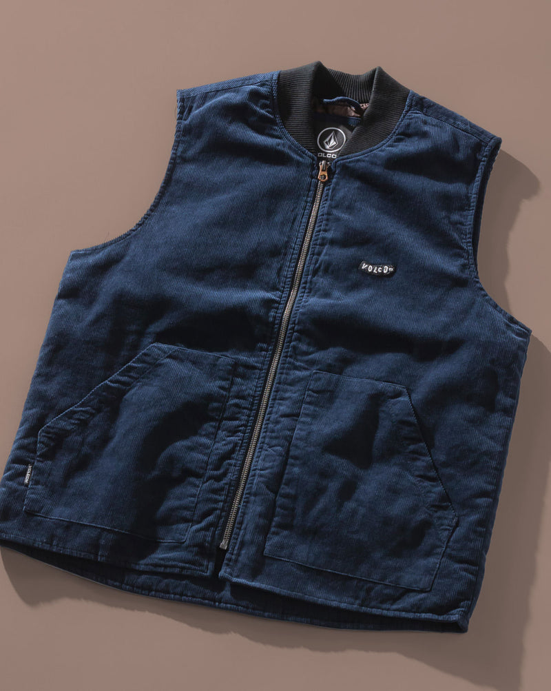 Colete Volcom V-Team. Possui modelagem ajustada, bolso externo e interno, forro interno, fechamento em zíper, bordado Volcom Pistol frontal e etiqueta Volcom na lateral.