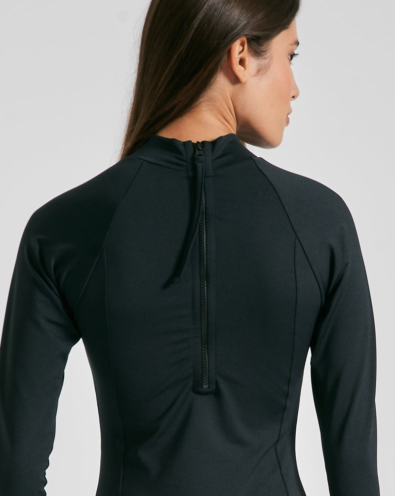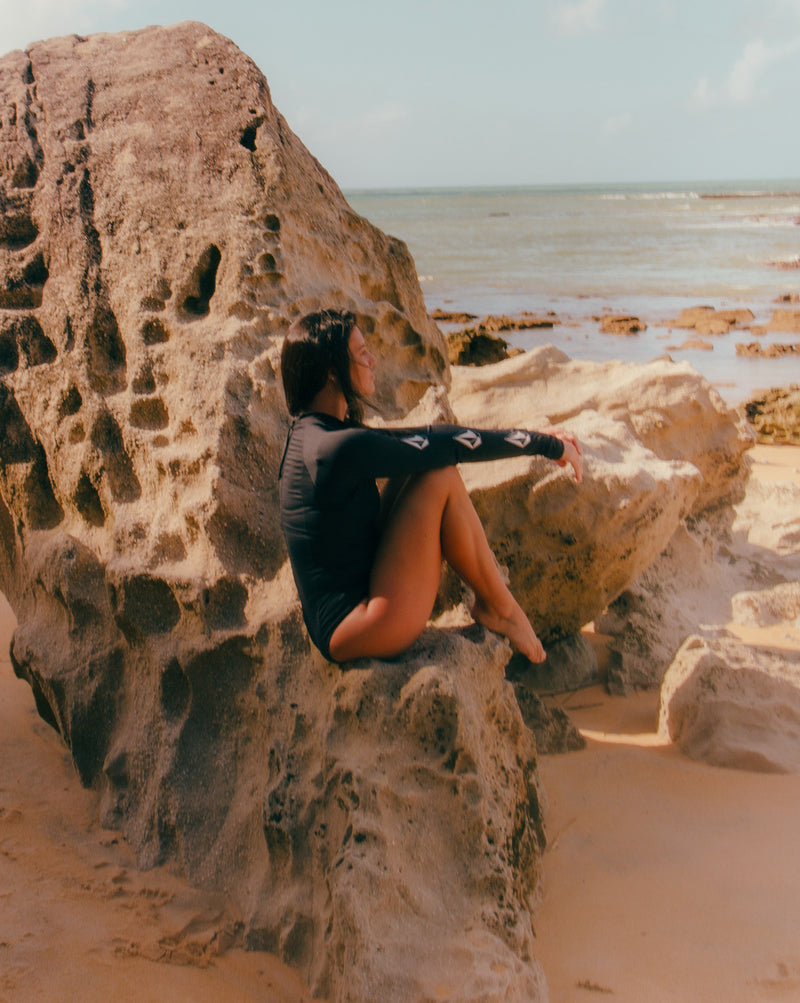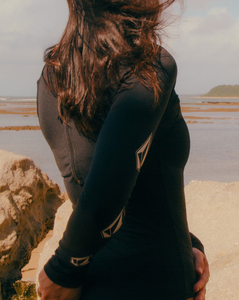 Maiô Volcom Iconic. Possui modelagem ajustada, estampa Stones em silk na manga, Volcom na gola, fechamento em zíper e proteção UV 50+. Confeccionada em tecido com tecnologia Dry.