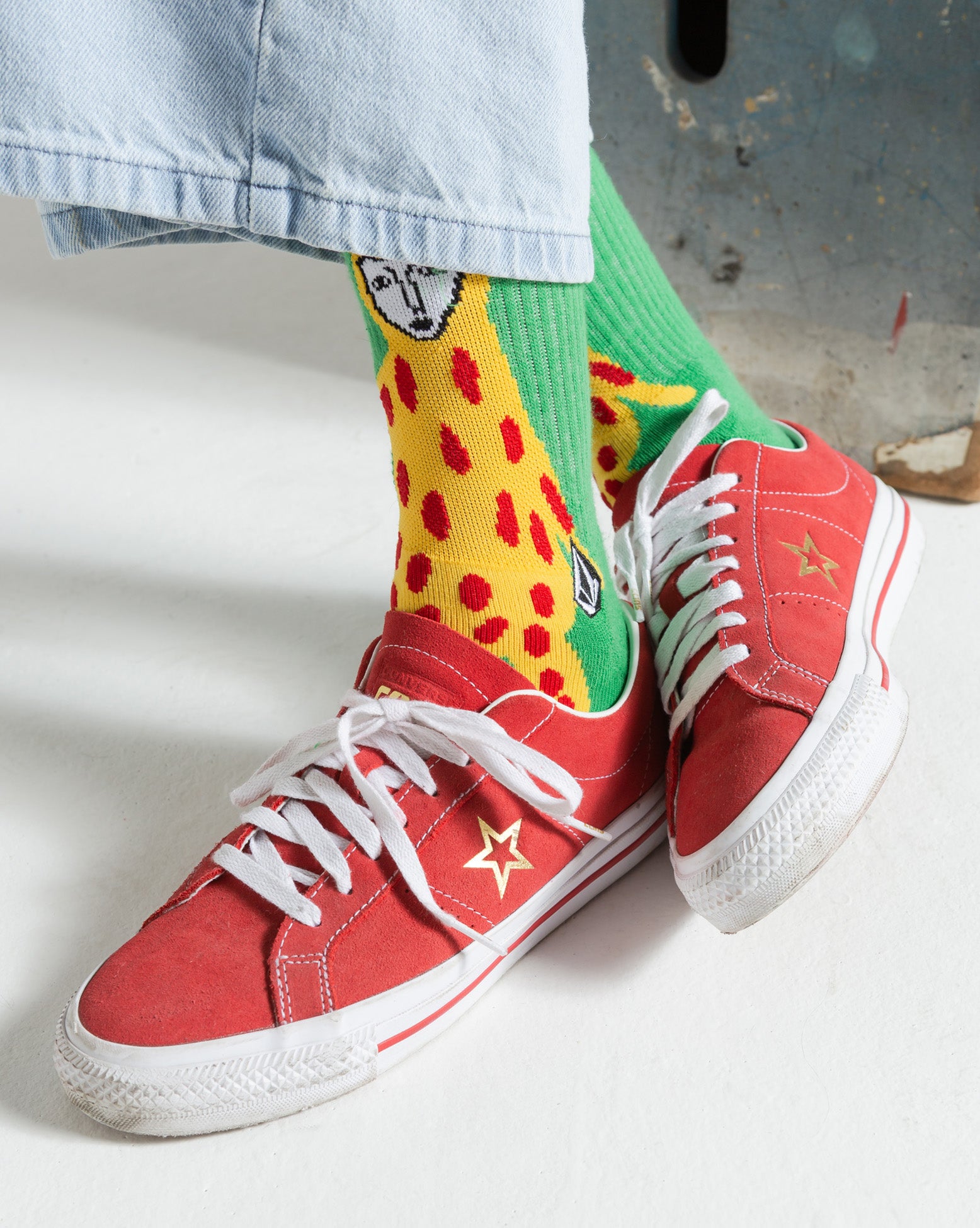 Meia Volcom FA x Alucinandinho Leopard Verde