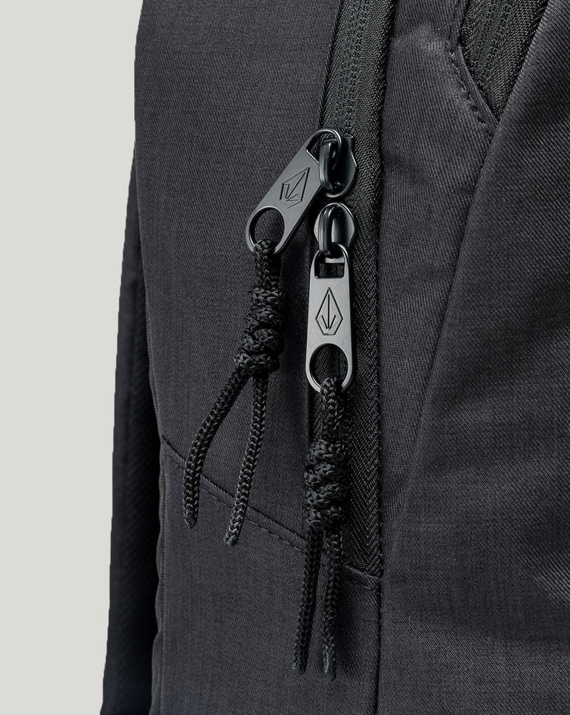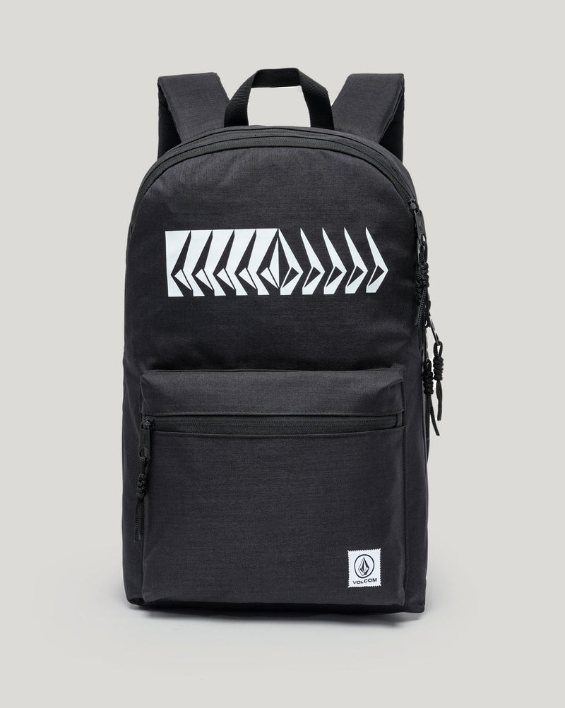Mochila Volcom Academy Preta. Confeccionada em poliéster texturizado. Possui zípers personalizados Volcom, detalhe bordado frontal e silk frontal.Também possui compartimento para notebook de até 15,6 polegadas. Possui 45 cm de altura, 30 cm de largura e 15 cm de profundidade.