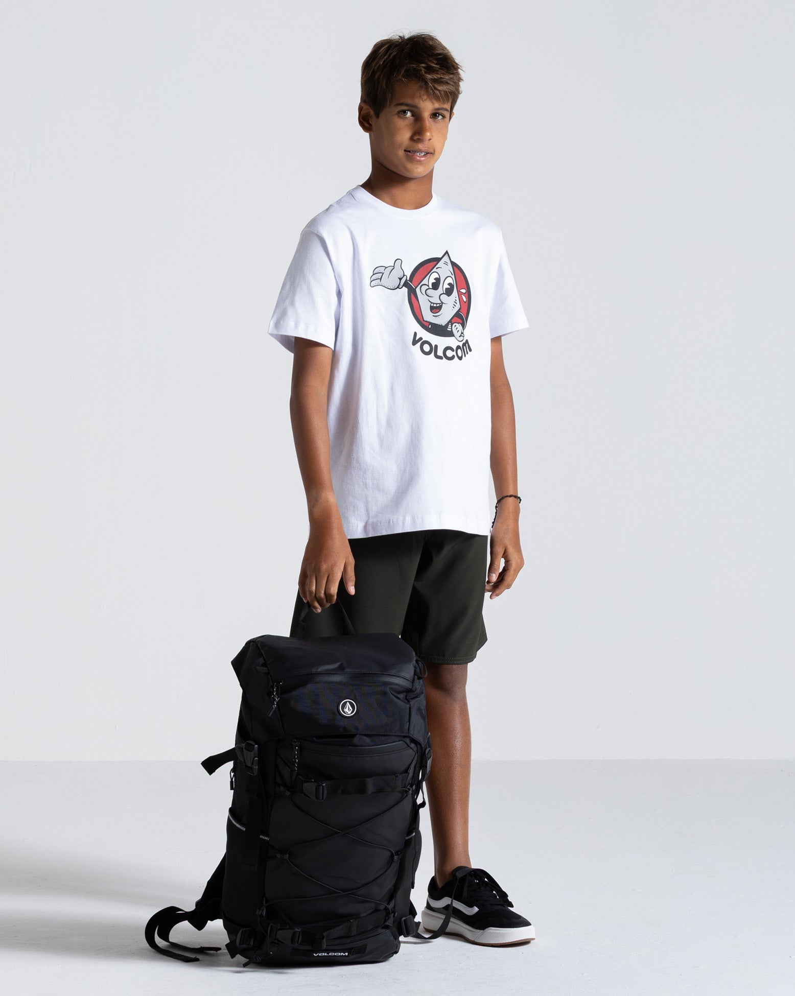 Mochila Volcom Peakstone Mountain. Dimensões: 56 x 30,5 x 15,5cm. Volume: 27L. Compartimento principal espaçoso, compartimento para laptop com compartimento para reservatório de hidratação e saída para mangueira, acesso principal pelo painel traseiro, opções de transporte vertical e lateral para prancha/skate, bolso frontal com zíper e organizador interno, bolsos laterais para garrafas de água, alças de ombro acolchoadas, alça peitoral com apito de emergência, cinta abdominal, bolsa oculta para transporte de capacete e alças laterais de compressão.