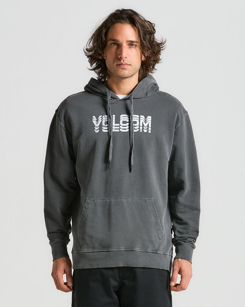 Moletom Volcom Canguru Cement. Possui modelagem regular, estampa em silk frontal e costas, etiqueta interna e lateral, moletinho sem felpa, bolso canguru e lavanderia efeito estonado.
