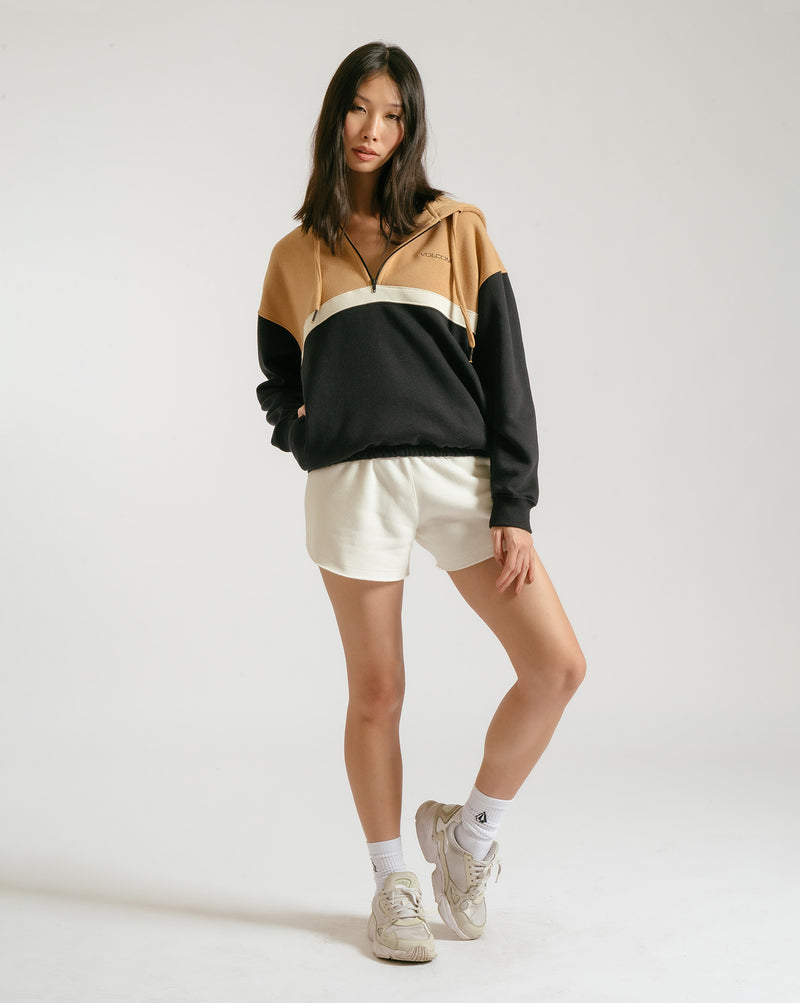 Moletom Volcom Canguru Earth Tripper. Possui modelagem relaxed, cordão de ajuste no pescoço, bolso lateral, bordado Volcom frontal e recorte frontal.