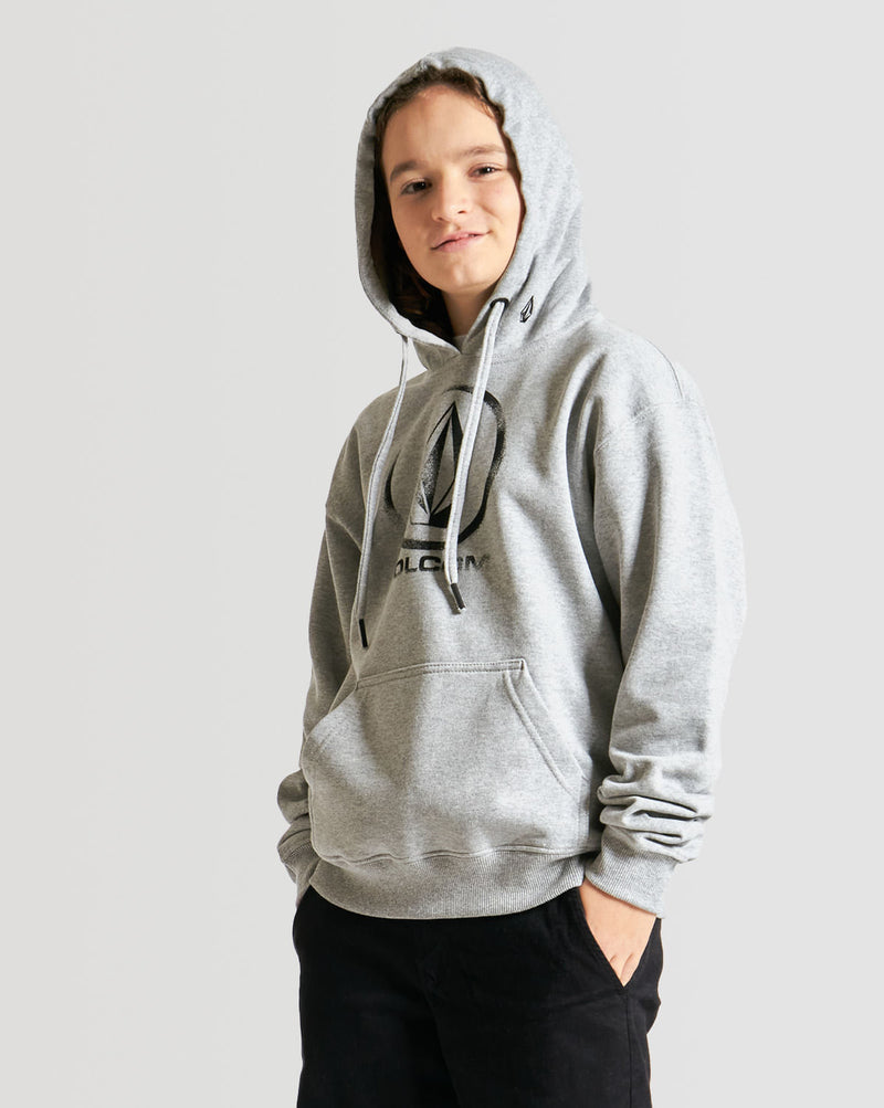 Moletom Volcom Canguru Logo Juvenil Cinza