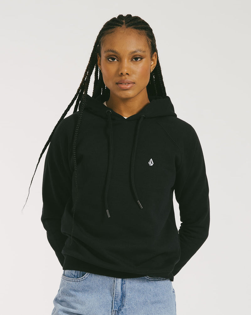 Moletom Volcom Canguru Single Stone. Possui modelagem regular, manga raglan, cordão de ajuste no capuz e bordado Volcom Stone frontal.