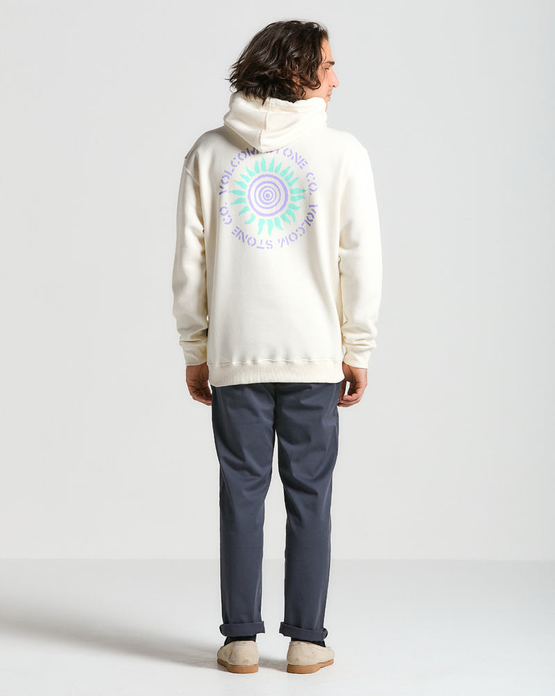 Moletom Volcom Canguru Stone Around. Possui modelagem regular, estampa em silk frontal e nas costas, etiqueta interna e lateral e bolso canguru.