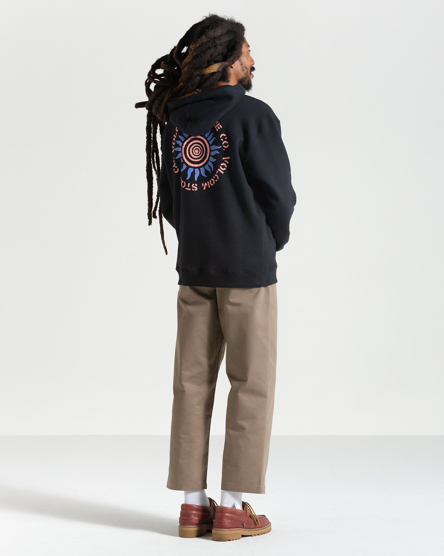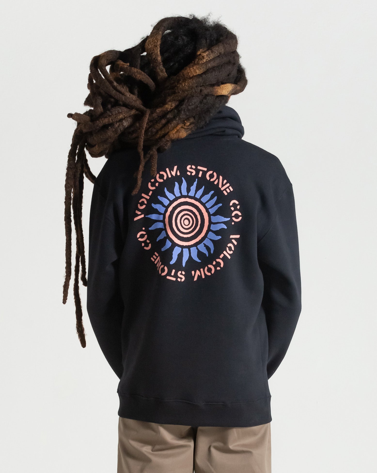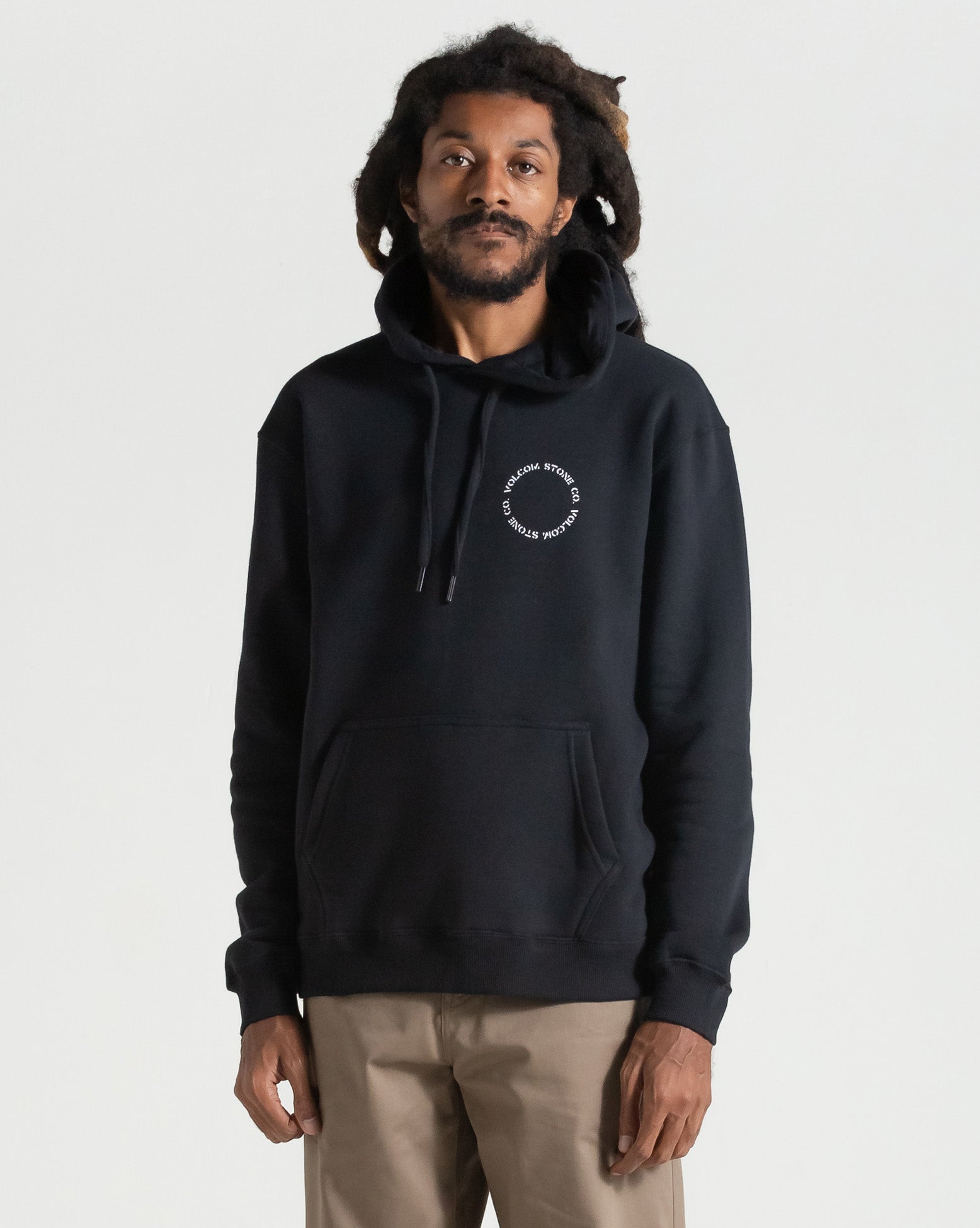 Moletom Volcom Canguru Stone Around. Possui modelagem regular, estampa em silk frontal e nas costas, etiqueta interna e lateral e bolso canguru.