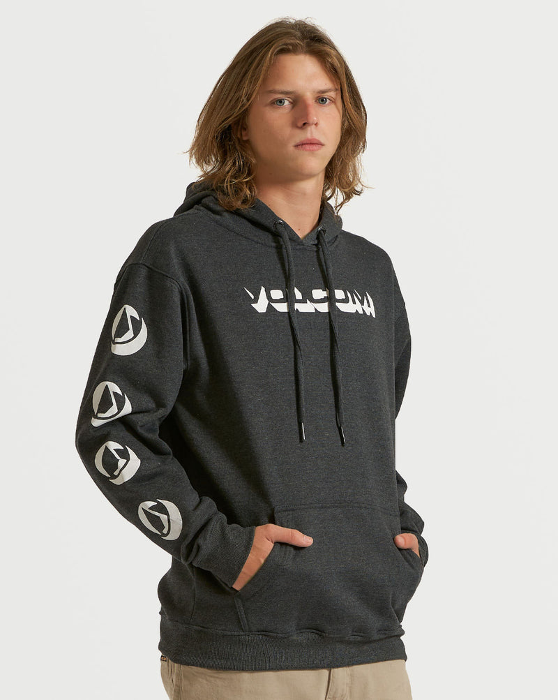 Moletom Volcom Canguru Stonedeep. Possui modelagem regular, estampa em silk frontal e nas costas, etiqueta interna e lateral e bolso canguru.