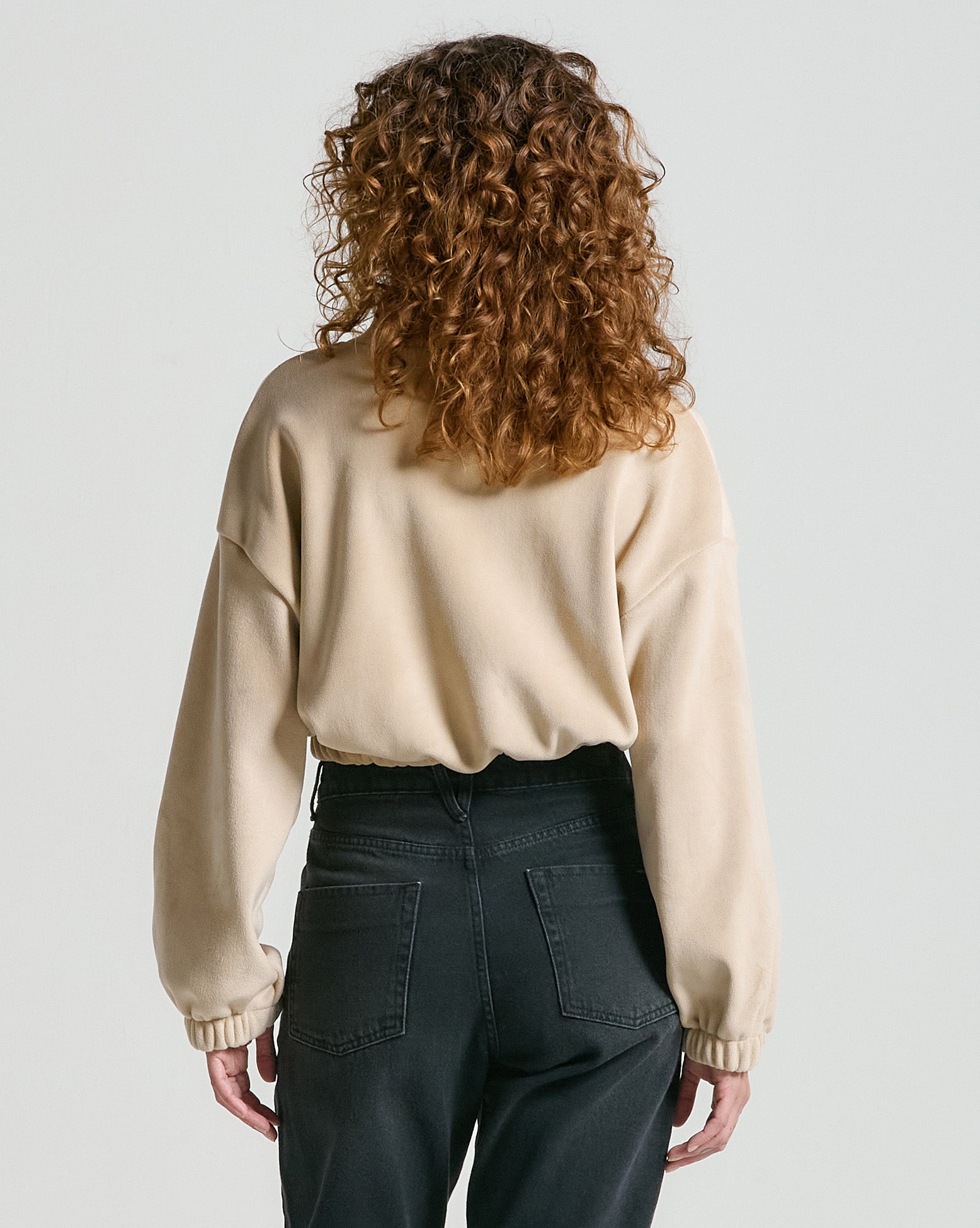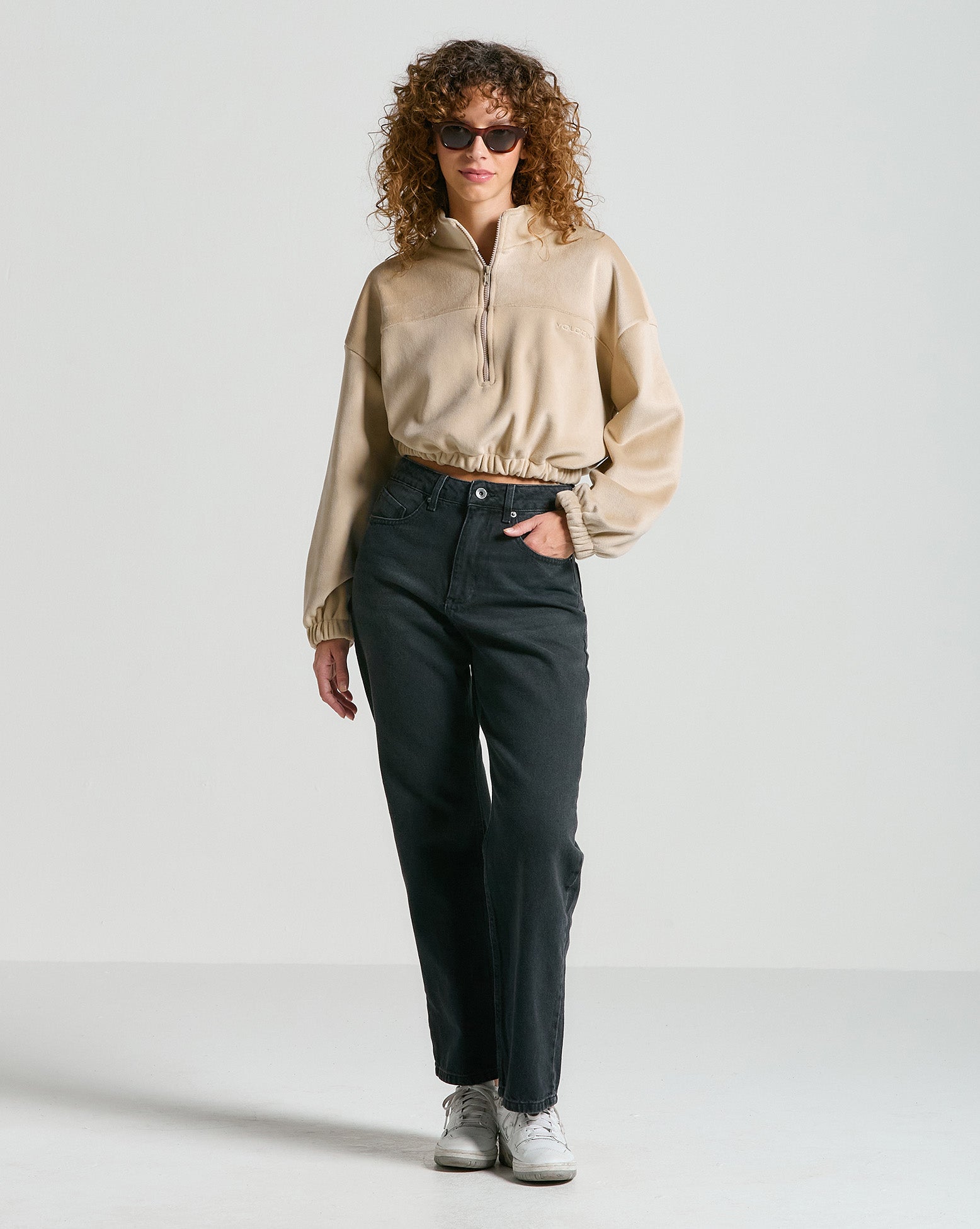 Moletom Volcom Soft. Possui modelagem cropped relaxed, gola alta, zíper frontal, bordado Volcom frontal e tecido soft.