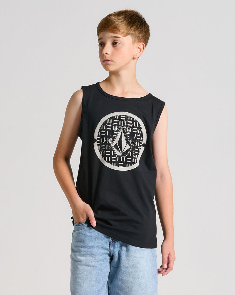 Regata Volcom Circle Texture Juvenil. Possui modelagem regular, estampa em silk frontal e etiqueta interna.