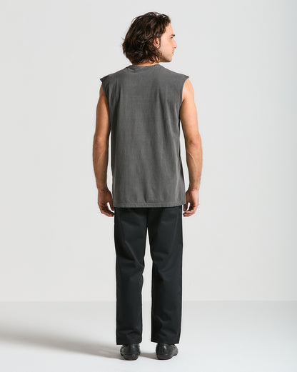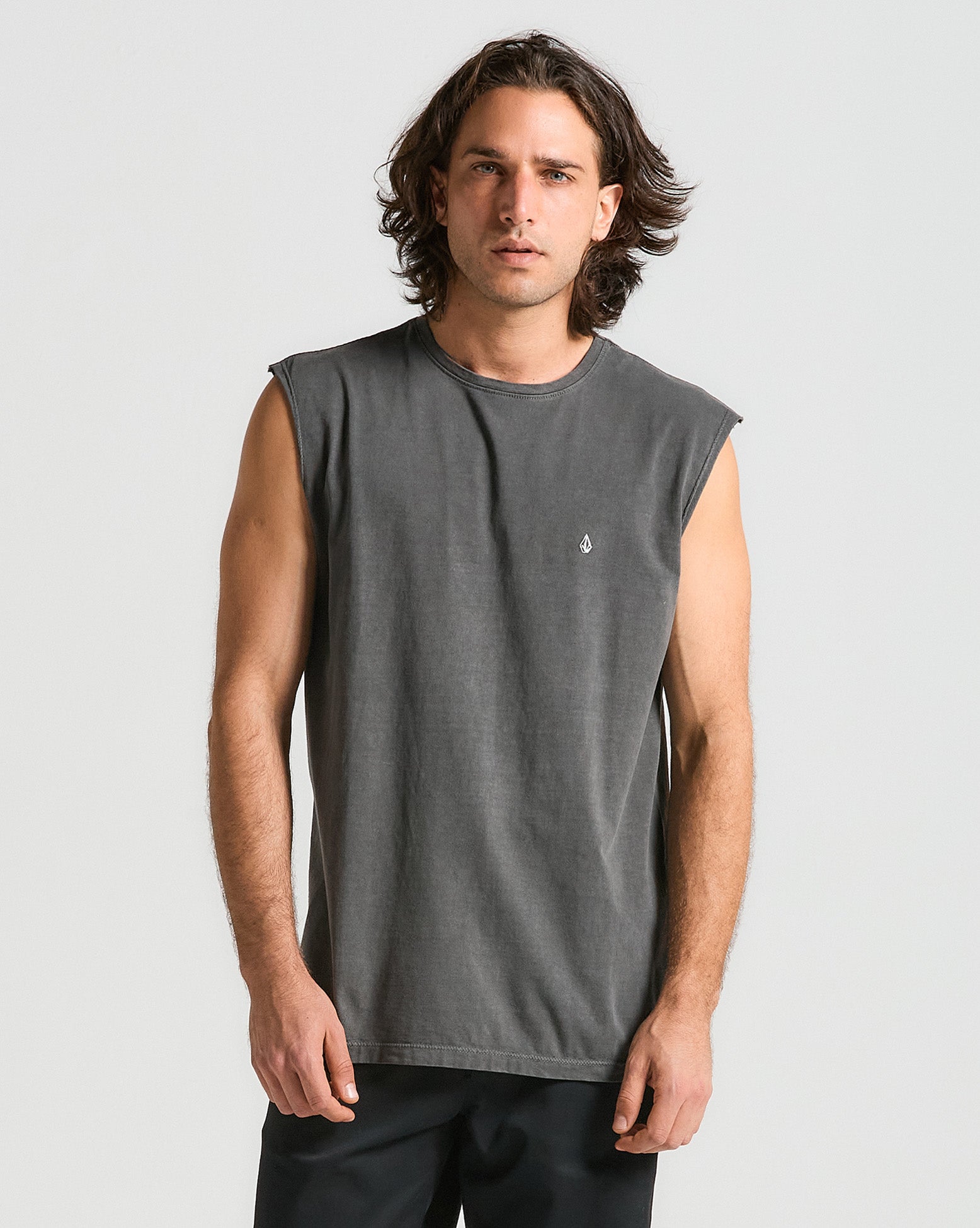 Regata Volcom Solid Stone. Possui modelagem regular machão, bordado Volcom Stone frontal, lavanderia efeito estonado e viés interno do próprio tecido.
