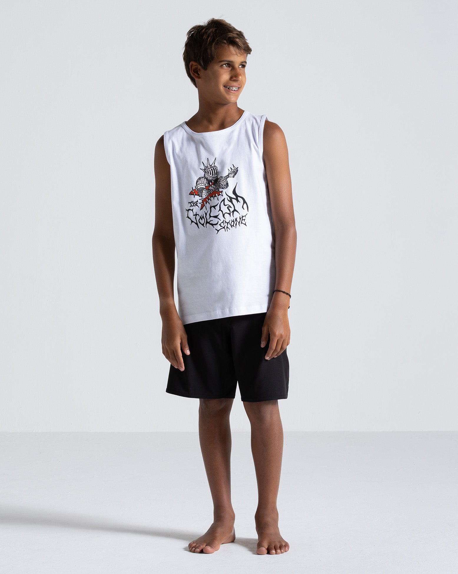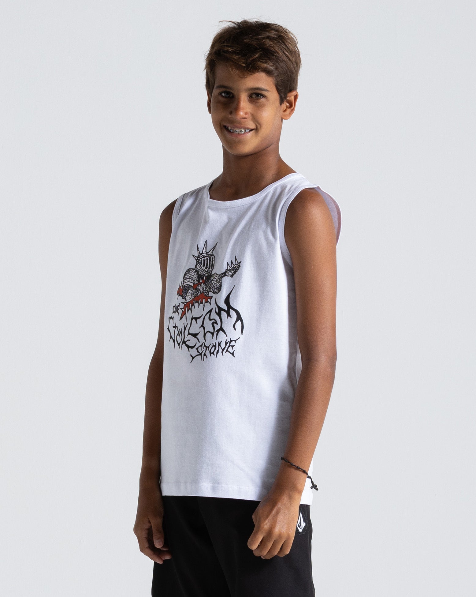Regata Volcom Spikesnight Juvenil Branca. Possui modelagem regular, silk frontal e etiqueta interna.