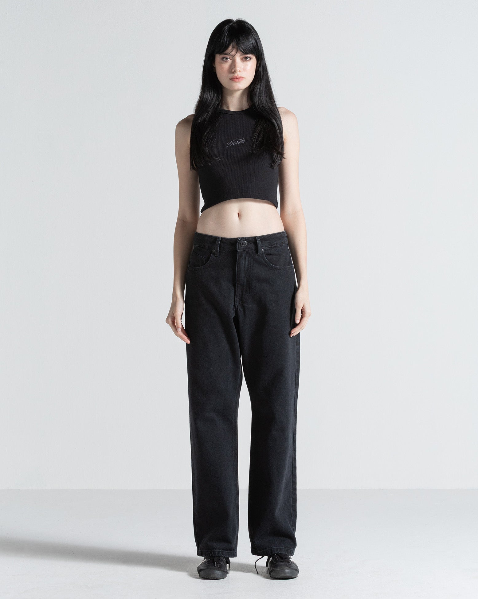 Regata Volcom Tight Tank Preta. Possui modelagem ajustada, bordado Volcom frontal, tecido ribana 2x1 e etiqueta interna.