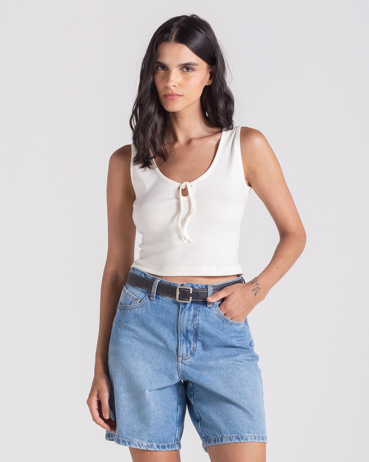 Regata Volcom Underwater Off White. Modelagem ajustada, detalhe em amarração, plaquinha de metal Volcom e tecido em rib.