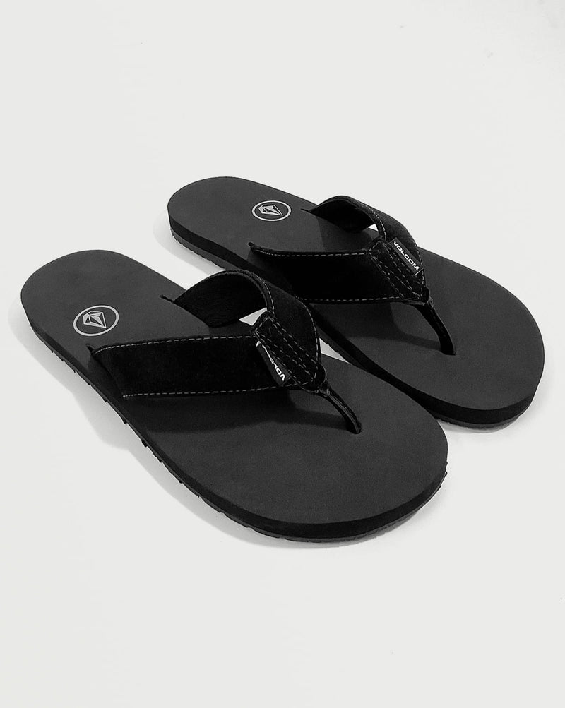 Sandália Volcom Day Use. Possui solado composto de PVC, palmilha com EVA emborrachado, tira laminado PVC de camurça, etiqueta Volcom na tira e silk Circle Stone no solado.