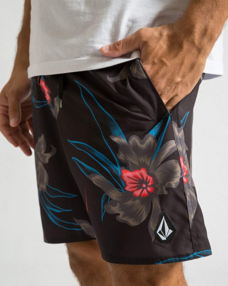 Shorts Volcom Island Time. Possui 18 polegadas de comprimento, bolso faca lateral, bolso traseiro com lapela e etiqueta Volcom, elástico no cós, ajuste com cadarço e patch Volcom Stone frontal. Confeccionado em tecido poliéster e elastano.