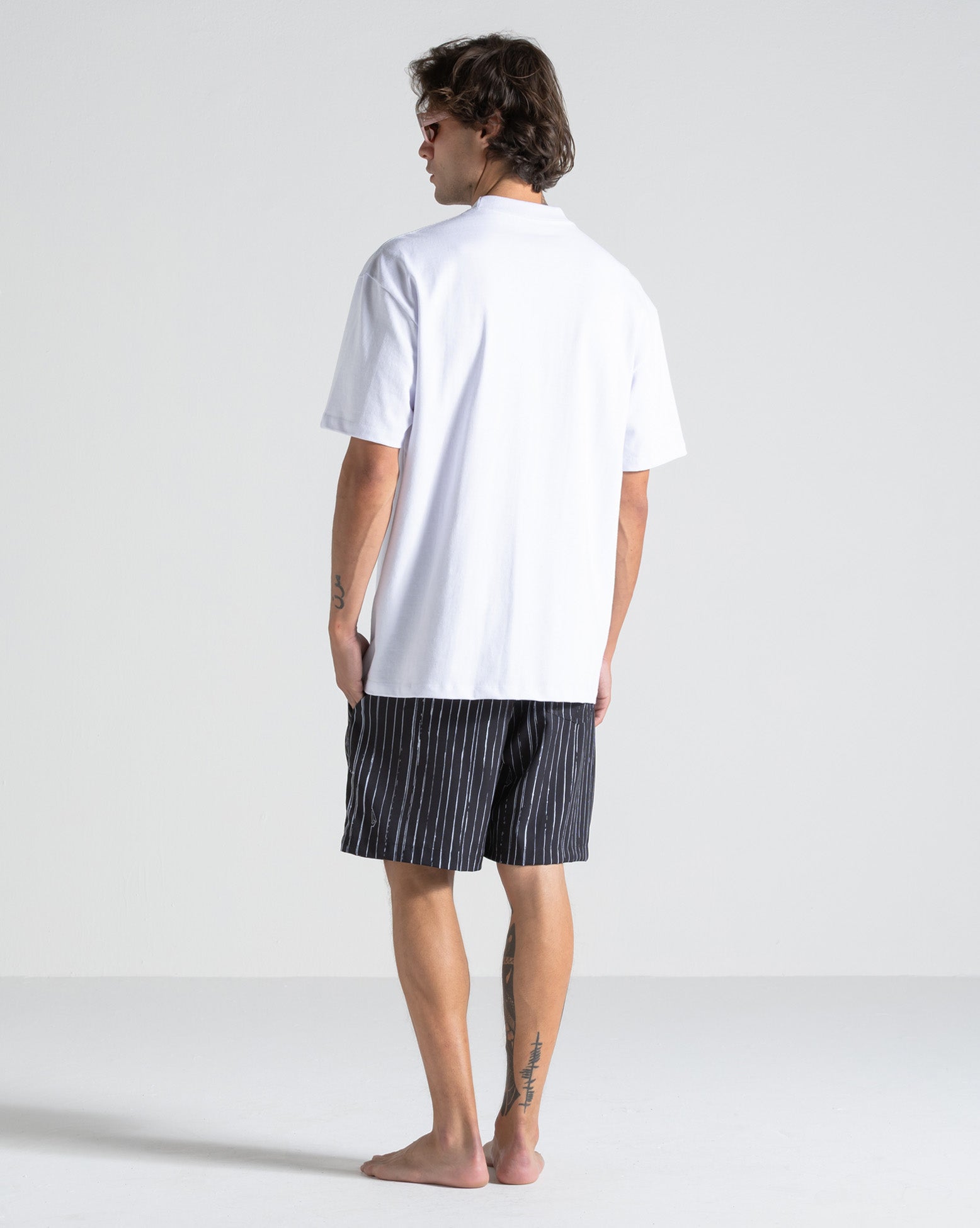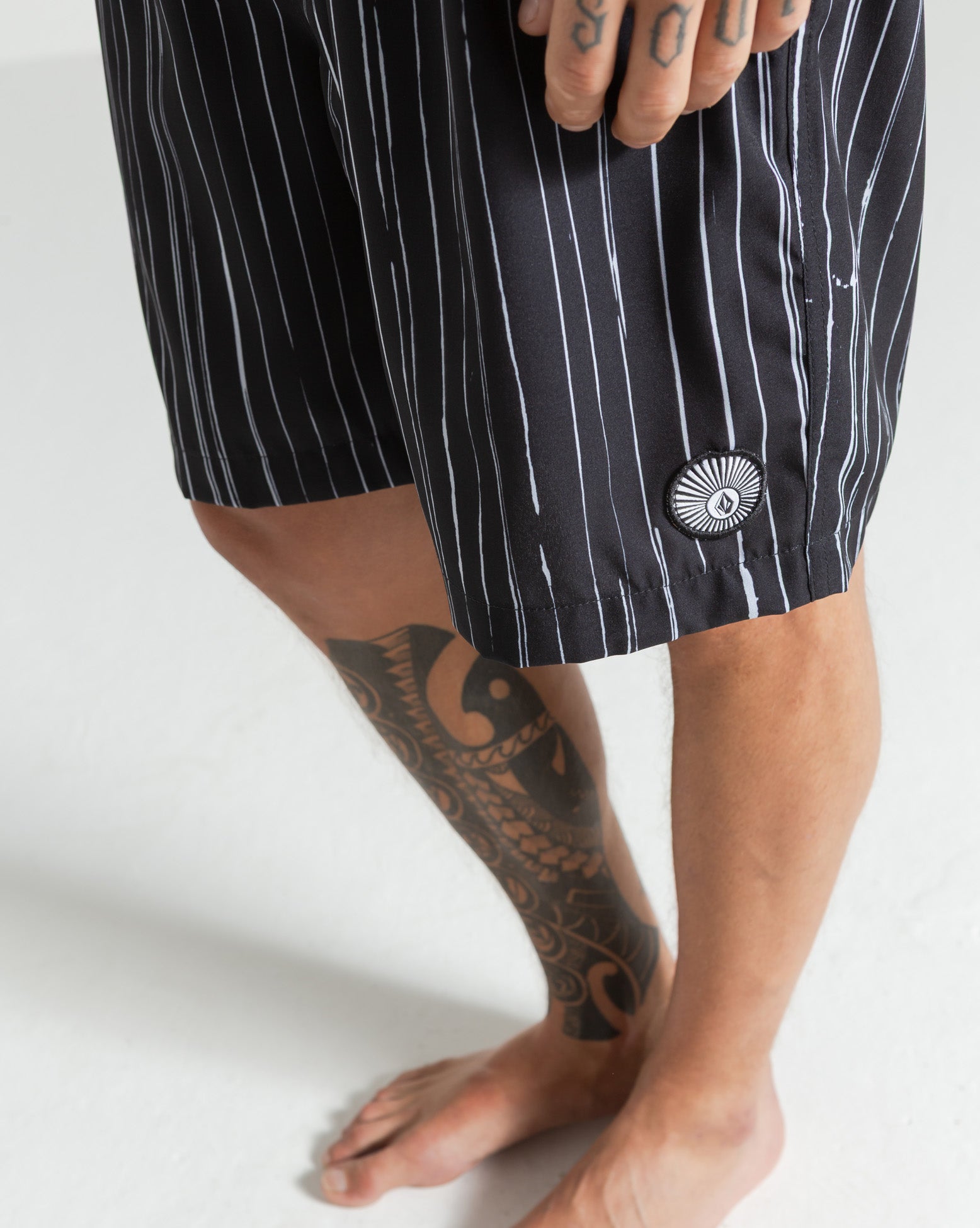 Shorts Volcom Psych Preto. Possui 18” de comprimento, bolso faca lateral, bolso traseiro com lapela e etiqueta Volcom, patch frontal, ajuste com cadarço e cós em elástico.
