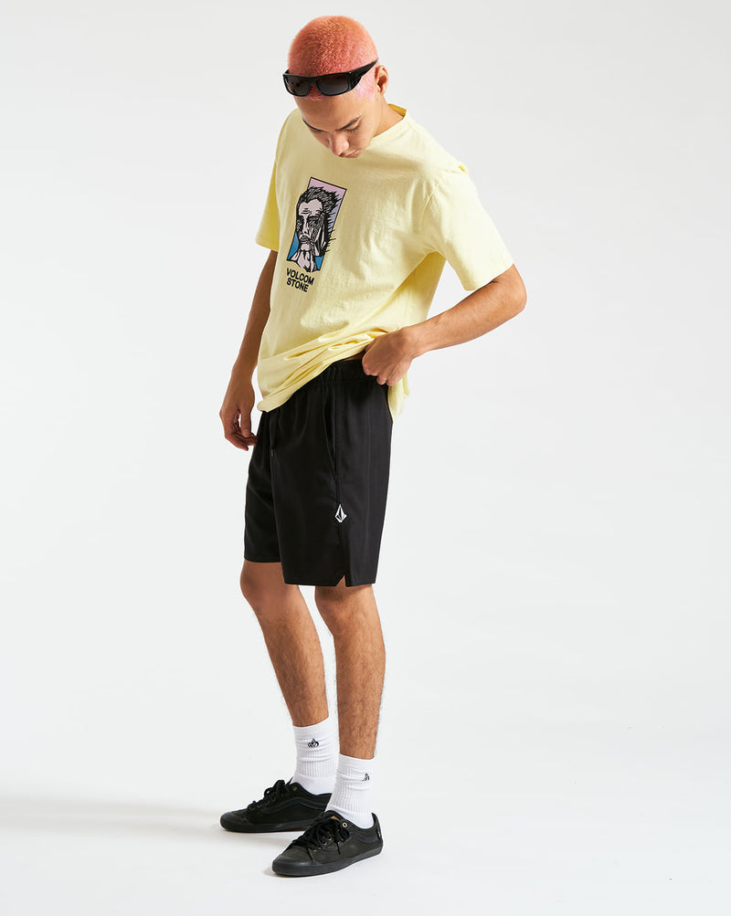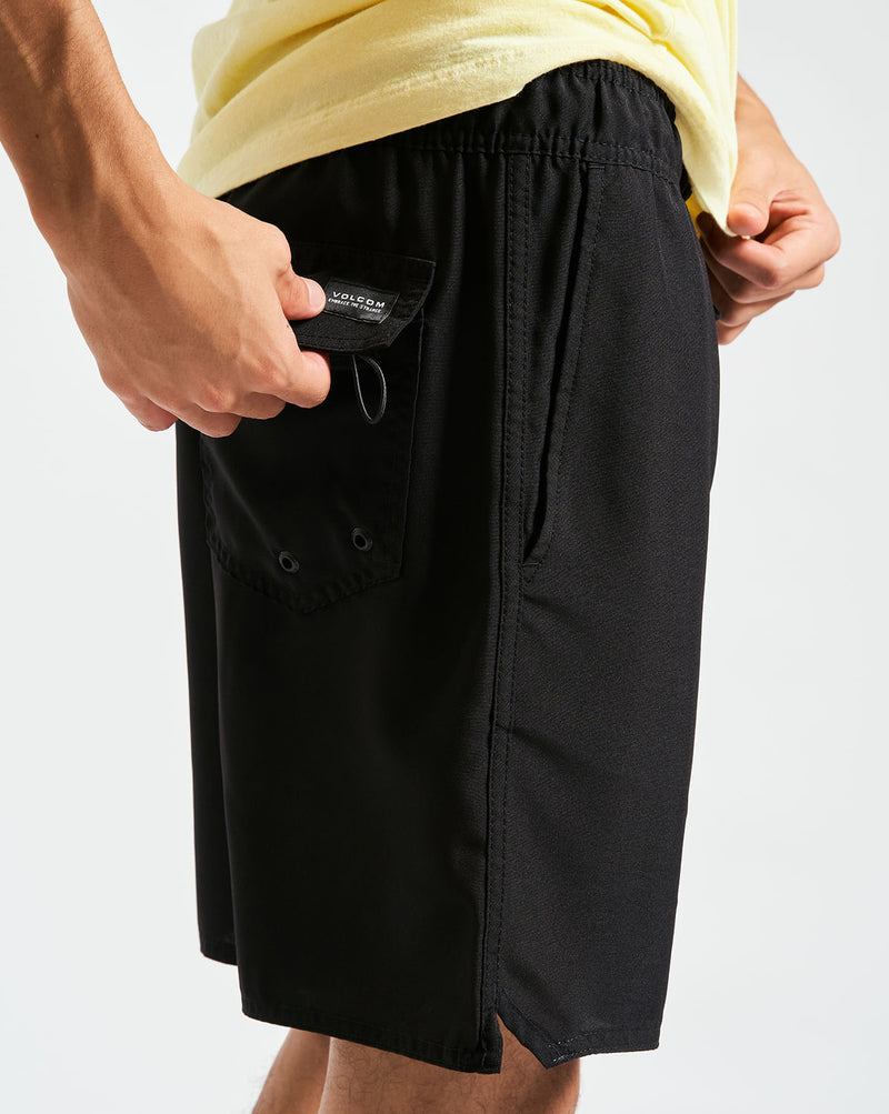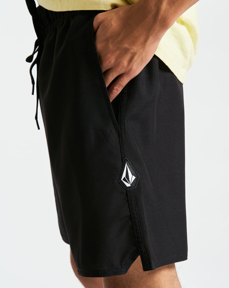 Shorts Volcom Solid Stone. Possui 18 polegadas de comprimento, bolso faca lateral, bolso traseiro com lapela e fechamento em velcro, elástico no cós, ajuste com cadarço e patch Volcom Stone frontal.