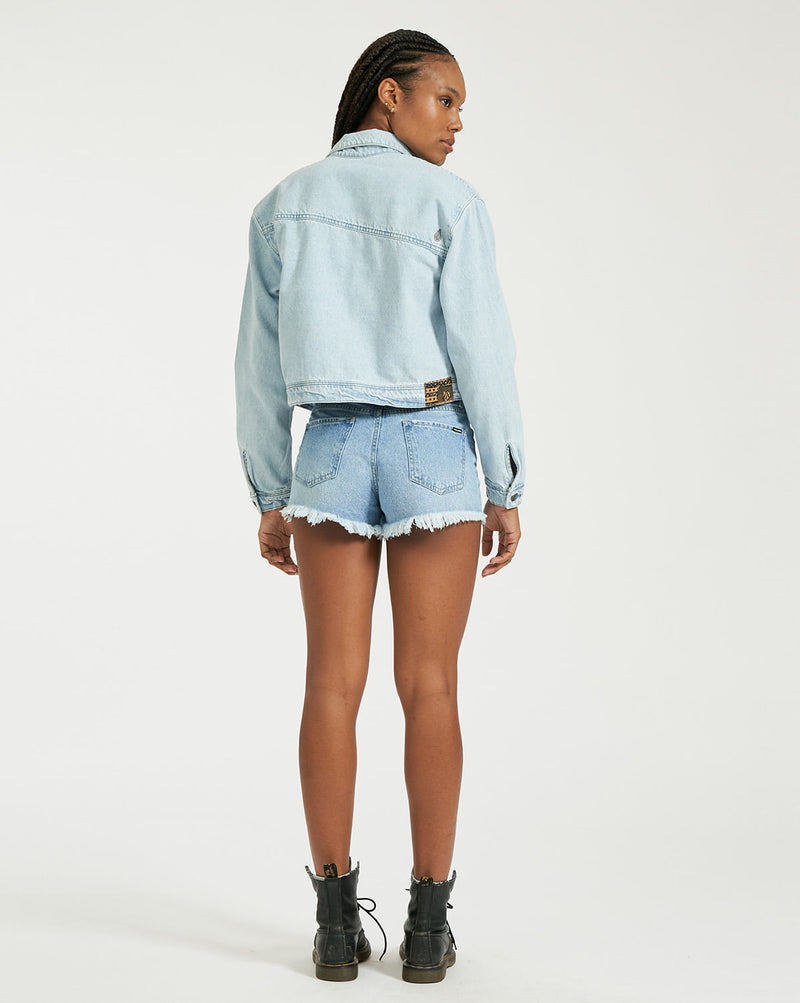 Shorts Volcom Stoney Stretch. Possui modelagem cintura alta relaxed, botão indestrutível, patch Volcom no cós traseiro, etiqueta Volcom no bolso traseiro e lavanderia amaciada com efeito used. Confeccionado em tecido algodão.