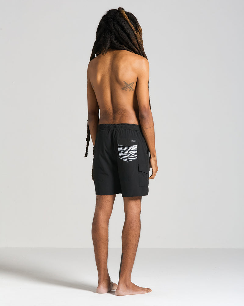 + Bolso traseiro com lapela, etiqueta Volcom e fechamento em velcro
