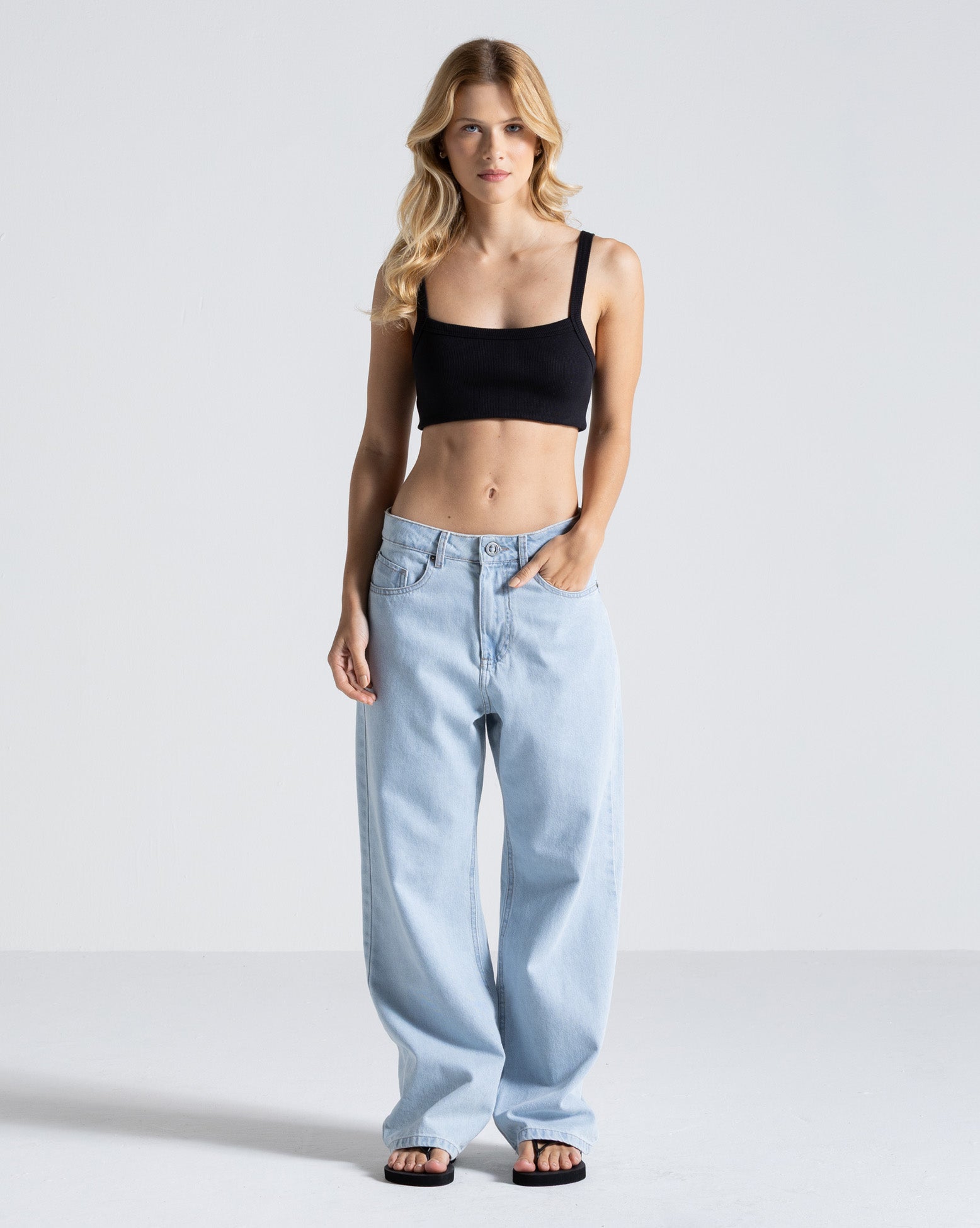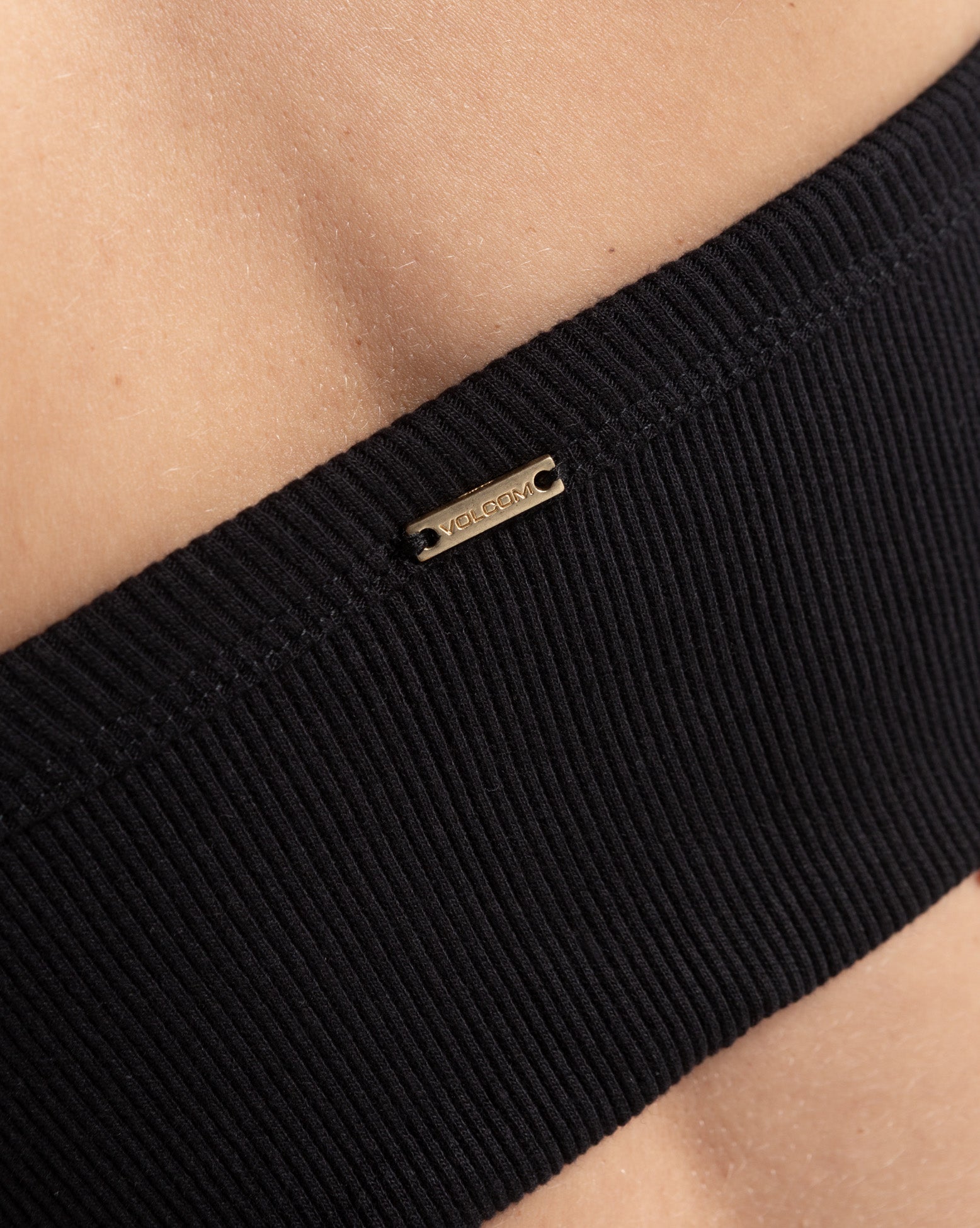 Top Volcom Riptide Preto. Modelagem cropped, plaquinha de metal Volcom e tecido em rib.